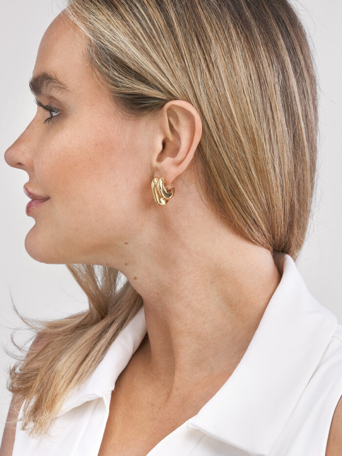 Double J-Hoop Earrings – 14K Yellow Gold – by Dazyle