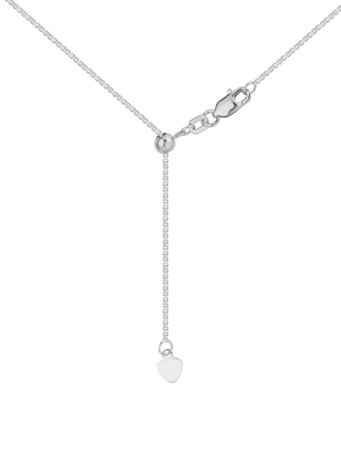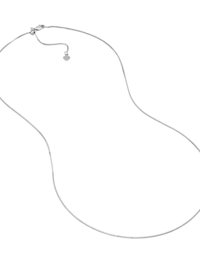 This classic 0.8mm Box Chain necklace is crafted from 10K white gold, offering a sleek and sophisticated look. The delicate chain features meticulously crafted links that catch the light beautifully. Secured with a secure lobster clasp, this necklace is perfect for everyday wear or adding a touch of elegance to any outfit.