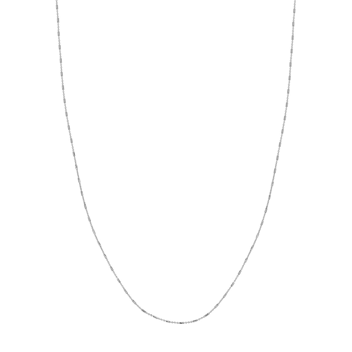 Make a statement with this unique 0.9mm barrel saturn cable chain crafted in gleaming 14K white gold. The distinctive design features edged barrel elements, creating a modern and eye-catching look. Secured with a secure spring ring closure, this chain ensures a comfortable and secure fit. Measuring 16 inches in length, it’s the perfect length to elevate any outfit.