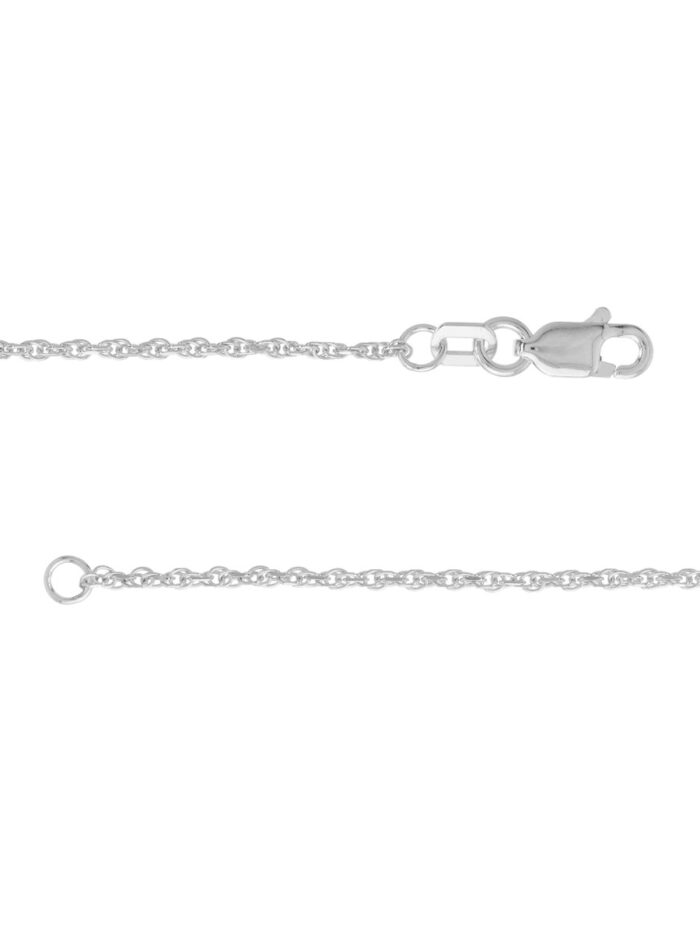 This 10K white gold Double Rope Diamond-Cut chain is the epitome of understated elegance. The intricate diamond-cut pattern catches the light beautifully, adding a subtle sparkle to your look. The 16-inch length is perfect for layering or wearing alone, making it a versatile addition to any jewelry collection.