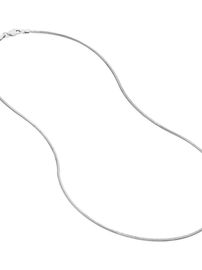 This 1.4mm Snake Chain is effortlessly chic, making it perfect for layering or wearing as a stunning solo piece. The hollow design offers a delicate yet durable feel. Secured with a reliable lobster clasp closure, this chain is easy to put on and take off. Crafted from 10K white gold, it radiates elegance and timeless style.