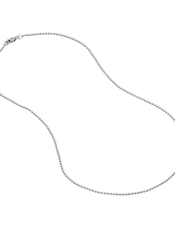 This elegant 1.5mm bead chain is crafted from lustrous 14K white gold, making it a timeless piece that will never go out of style. The secure lobster clasp ensures easy wear, while the 16-inch length complements a variety of necklines. A classic choice for everyday elegance or as a foundation for pendants, this chain is a versatile addition to any jewelry collection.
