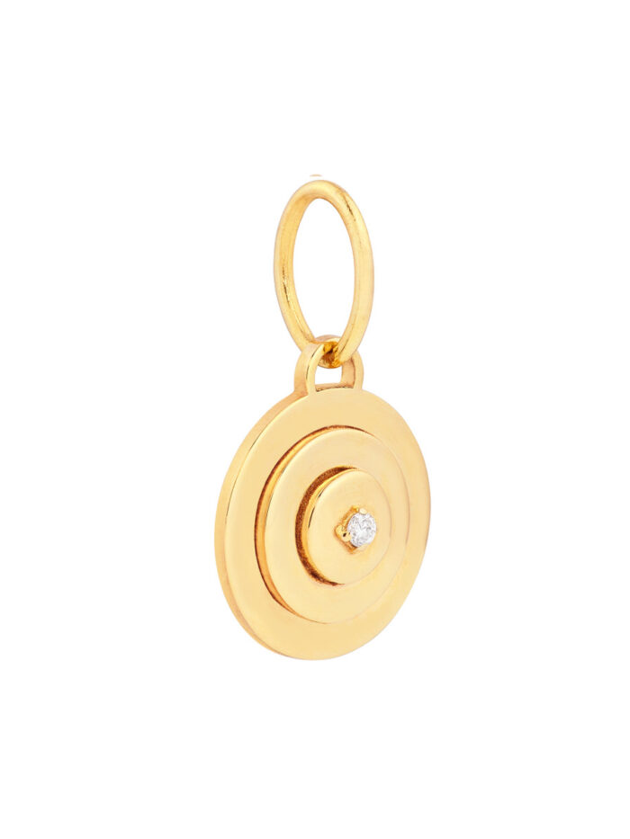 1.5pt Diamond Concentric Round Pendant – 14K Yellow Gold – by Dazyle
