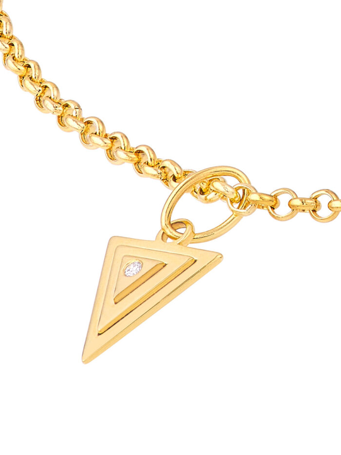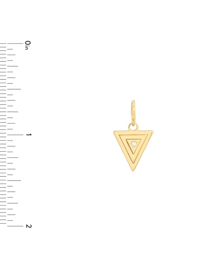 Make a statement with our 1.5pt Diamond Triangle Stacked Pendant. This exquisite pendant features a lustrous 14K yellow gold triangle adorned with a sparkling 1.5pt diamond, seamlessly combining timeless elegance with modern sophistication.