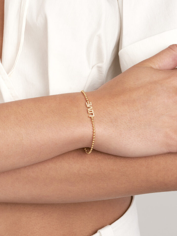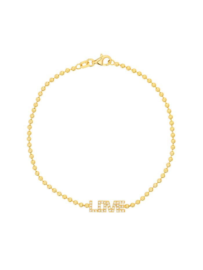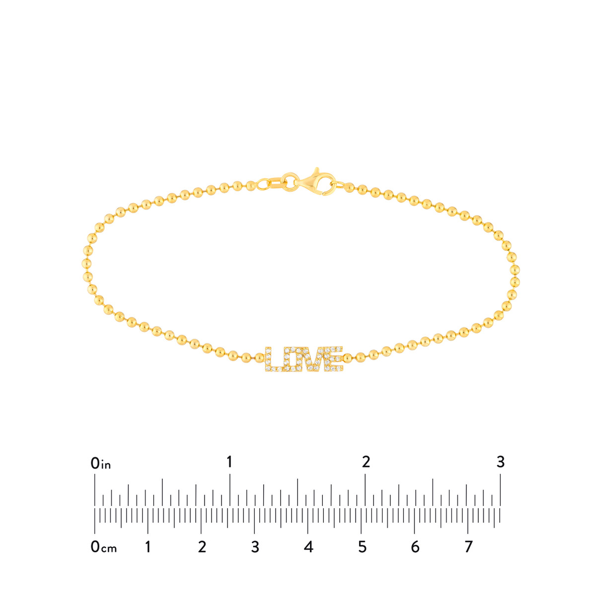 Embrace elegance with this delicate 7.5-inch diamond accented bead chain bracelet. Crafted from shimmering 14K yellow gold, this bracelet features a unique love station design accented by a 1/6 carat total weight of diamonds. The secure pear-shape lobster clasp ensures a comfortable and secure fit.