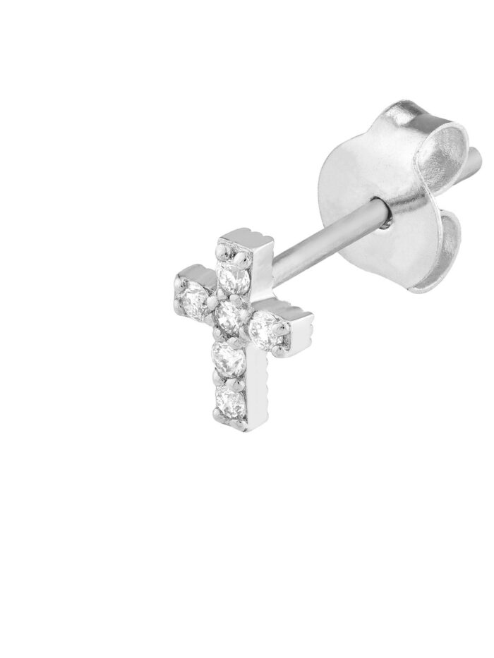 Express your faith with timeless elegance. These 1/8tcw Diamond Cross Stud Earrings are crafted from lustrous 14K white gold and feature a delicate cross design accented with sparkling diamonds. Perfectly sized for everyday wear, they make a beautiful addition to any ear stack.
