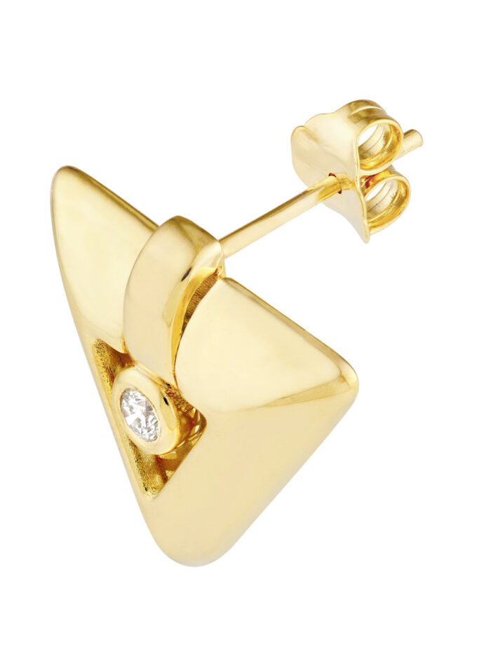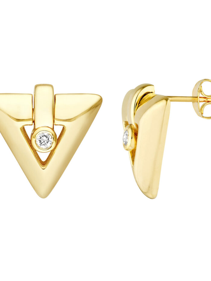 Shine with our 1/8tcw Diamond Triangle Dangle Earrings. These stunning earrings feature sparkling diamonds set in luxurious 14K yellow gold, offering a timeless and elegant look. The comfortable post and nut closure ensures a secure and comfortable fit for all-day wear.