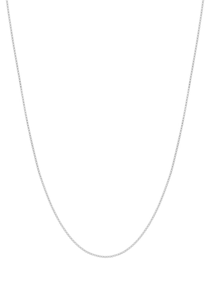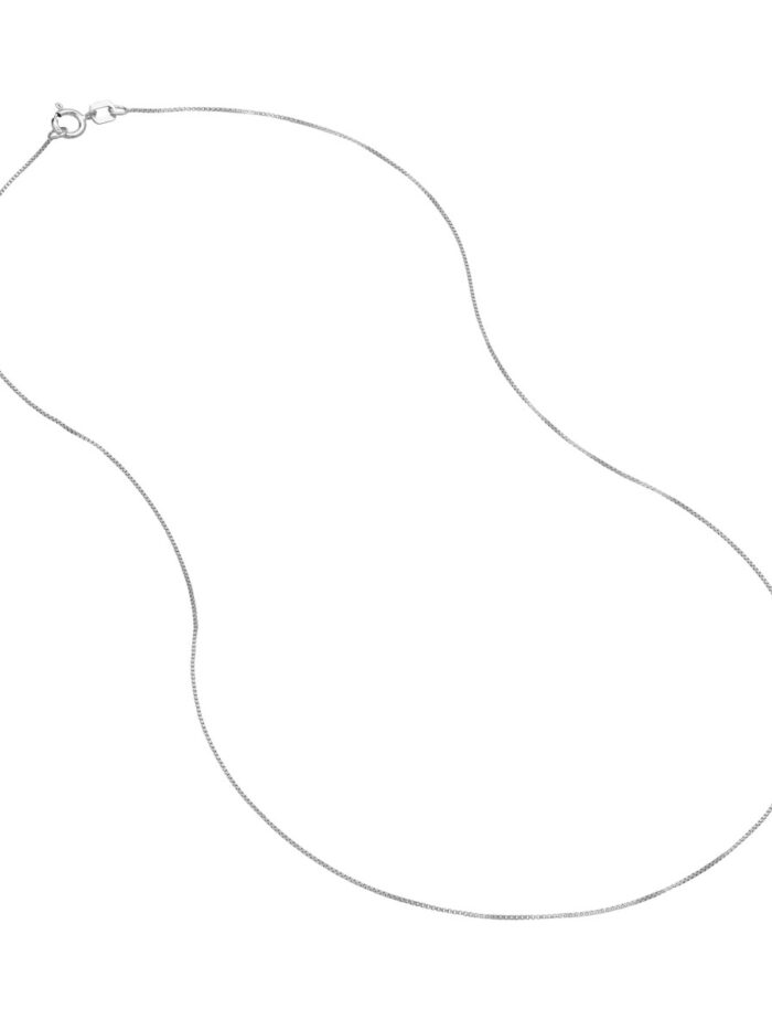Elevate your style with this classic 10K white gold box chain necklace. Measuring 0.55mm wide, this delicate chain features a secure spring ring closure and comes in a versatile 16-inch length, making it perfect for layering or wearing solo. The timeless box chain design adds a touch of sophistication to any outfit, effortlessly enhancing your look.
