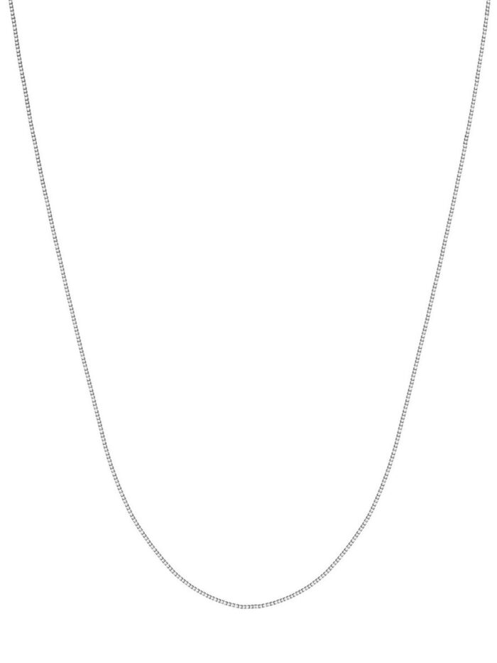 Add a touch of sophistication to your look with our 10K White Gold Box Chain. This sleek and minimalist chain features a refined 0.55mm width and a secure lobster lock closure. Measuring 16 inches in length, it’s the perfect size for everyday wear. The classic box chain design offers a timeless elegance that complements any style, making it a versatile choice for layering or wearing solo.