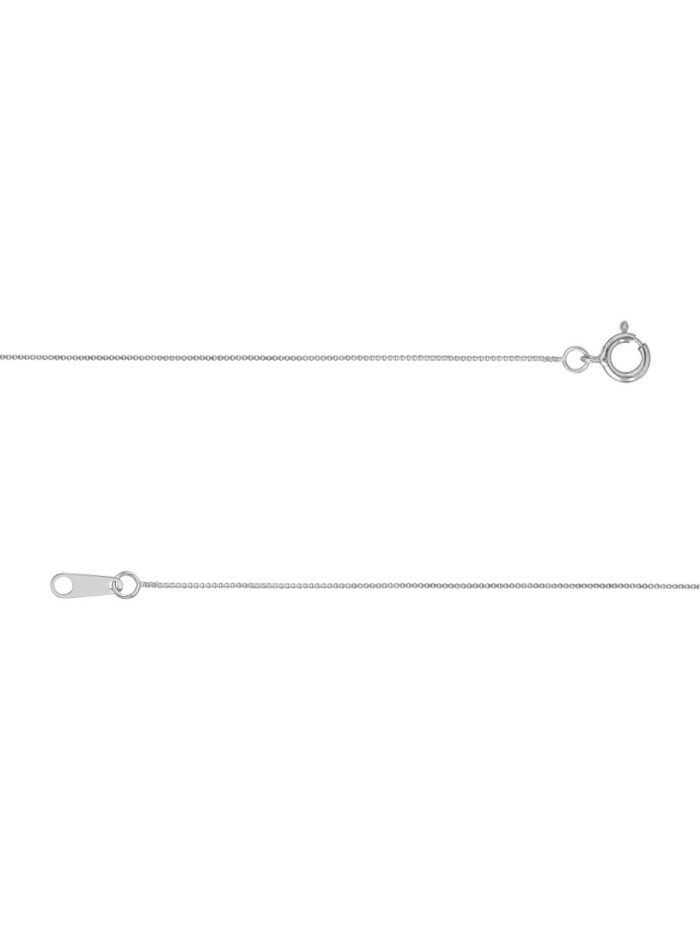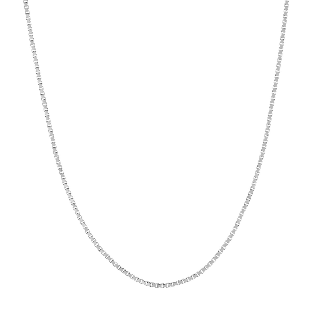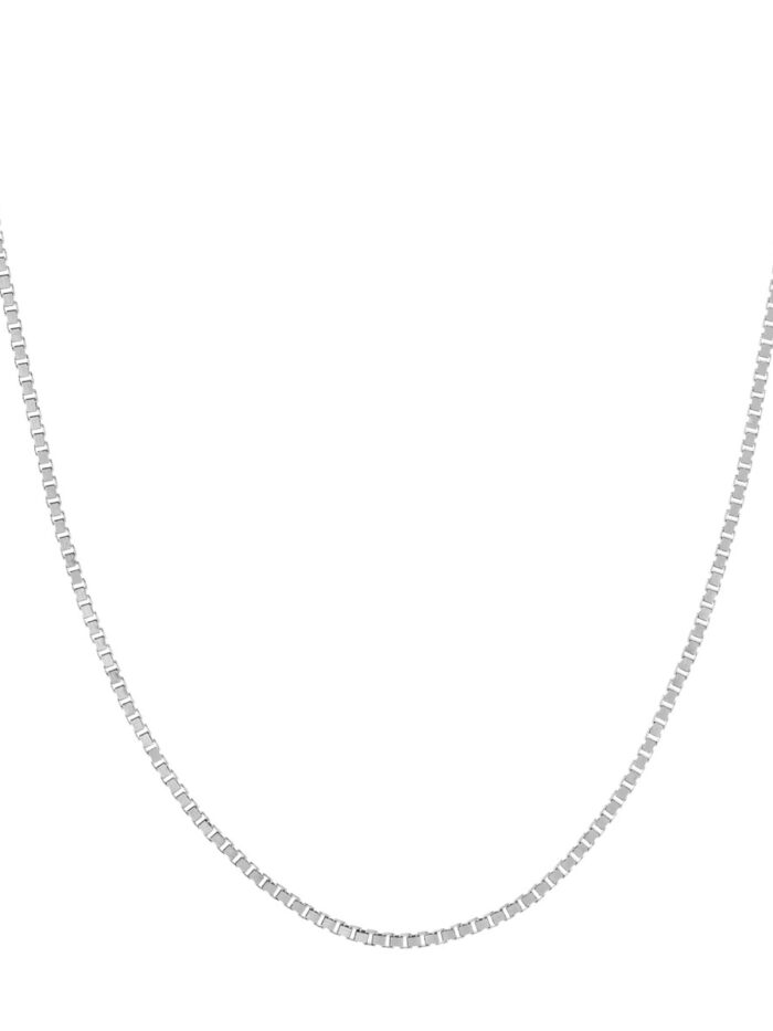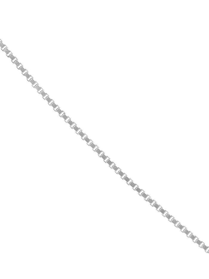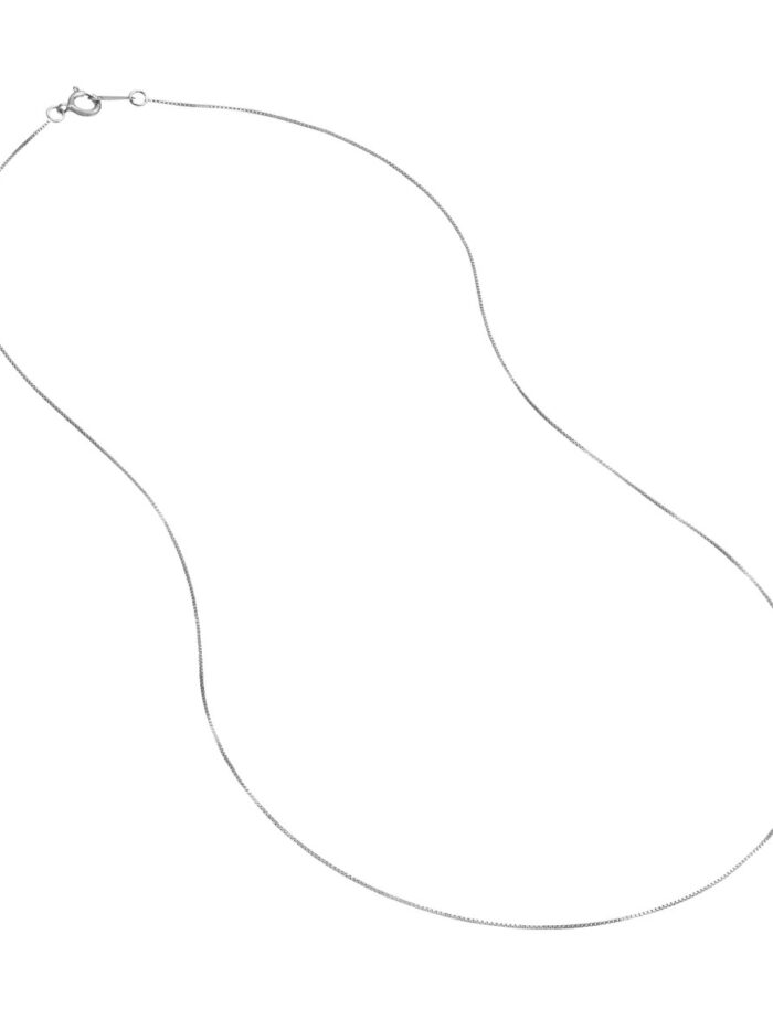 Experience the timeless elegance of a 10K white gold box chain. This sleek and sophisticated chain features a classic box-link design, adding a touch of understated luxury to any look. The secure spring ring clasp ensures easy wear, while the Q-Tag adds a unique and personalized touch.