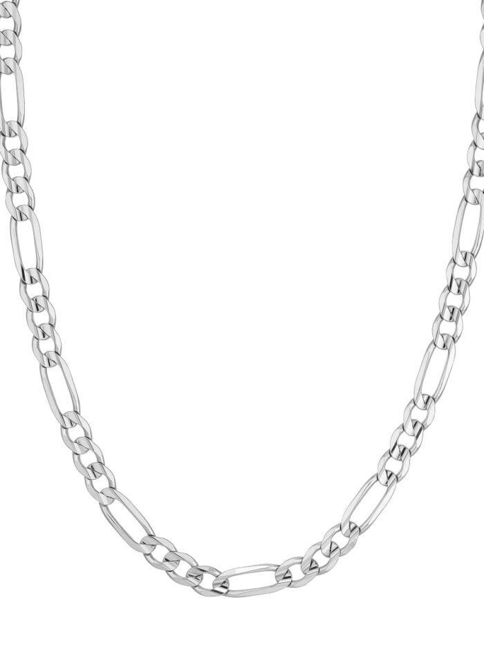 Experience the sophisticated style of our 7.2mm Light Concave Figaro Chain, crafted from lustrous 10K white gold. This chain features a distinctive pear-shaped lobster clasp for a secure and elegant closure. The Figaro chain pattern, known for its alternating links, adds a touch of visual interest and complements a wide range of styles.