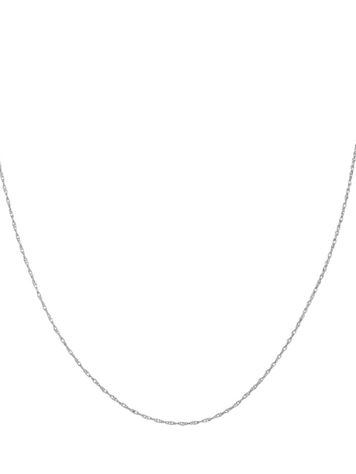 Experience the timeless elegance of our 10K White Gold Pendant Rope Chain. This graceful chain, crafted with meticulous attention to detail, features a classic rope design that adds a touch of sophistication to any look. The lightweight 0.95mm thickness ensures comfortable wear, while the secure lobster lock closure provides peace of mind.