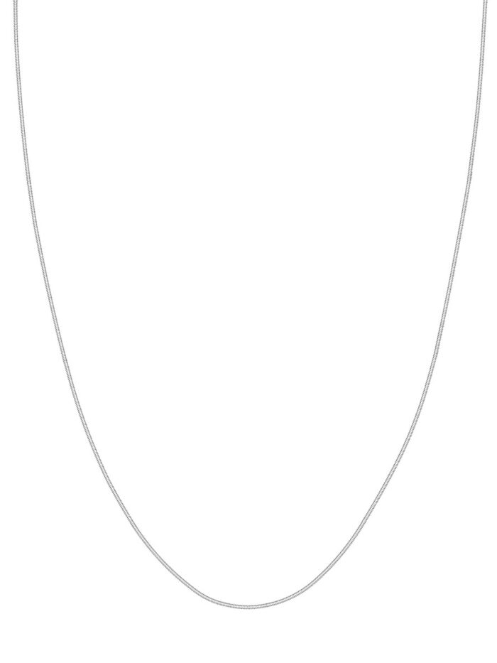 Elevate your everyday style with this effortlessly chic 10K white gold snake chain necklace. This delicate chain, measuring 1mm in width, features a secure lobster clasp closure for added convenience. Its classic snake chain design adds a touch of sophistication to any look, whether layered with other necklaces or worn as a standalone statement piece.