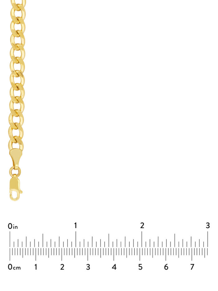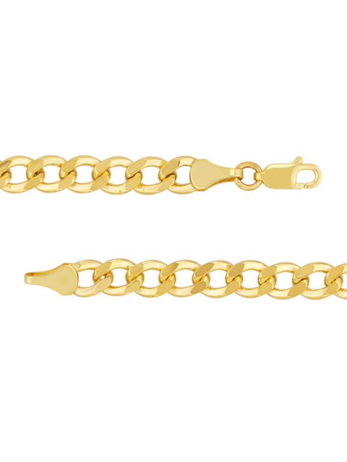Make a bold statement with this 10K yellow gold Cuban Chain. Measuring 5.7mm wide, this chain exudes a masculine edge while remaining versatile enough for everyday wear. The iconic Cuban link design adds a touch of contemporary cool. The secure lobster clasp ensures a comfortable fit, making it perfect for layering or wearing solo. At 20 inches, this chain sits confidently on the chest.