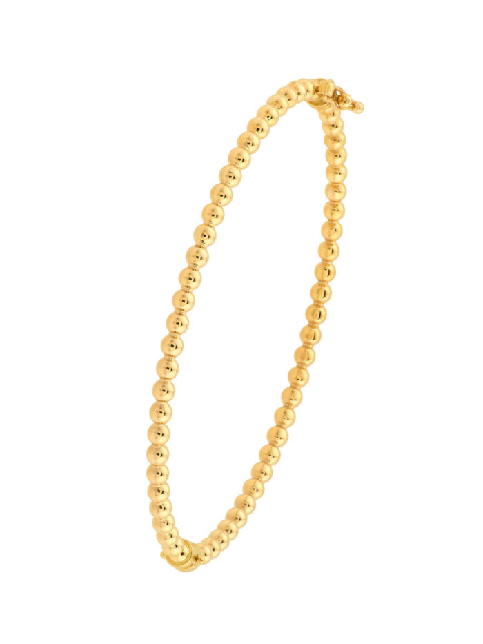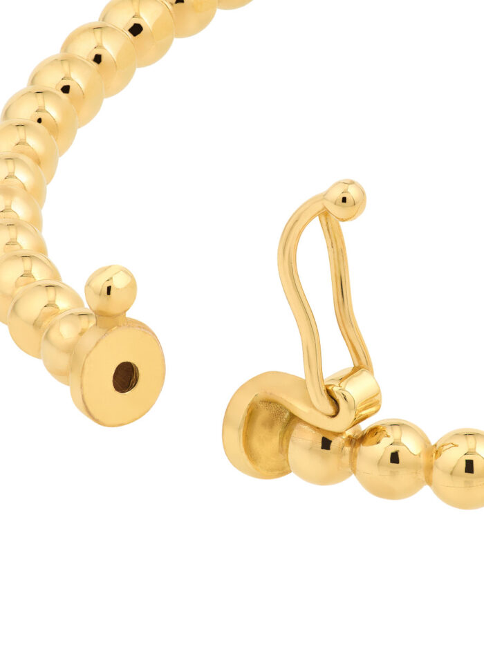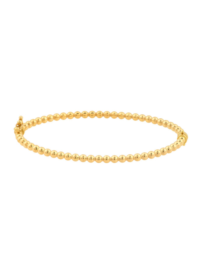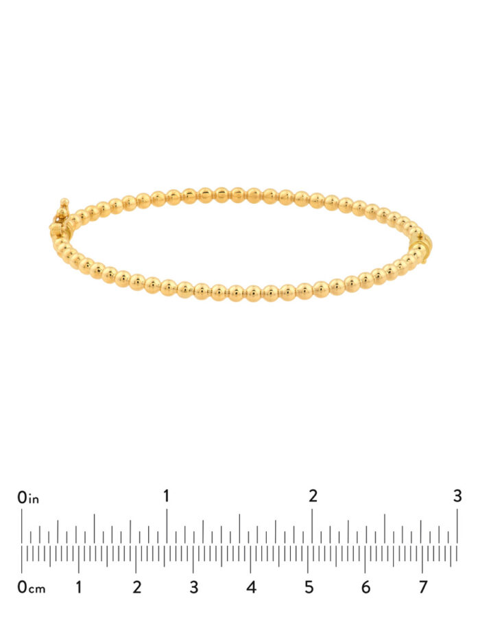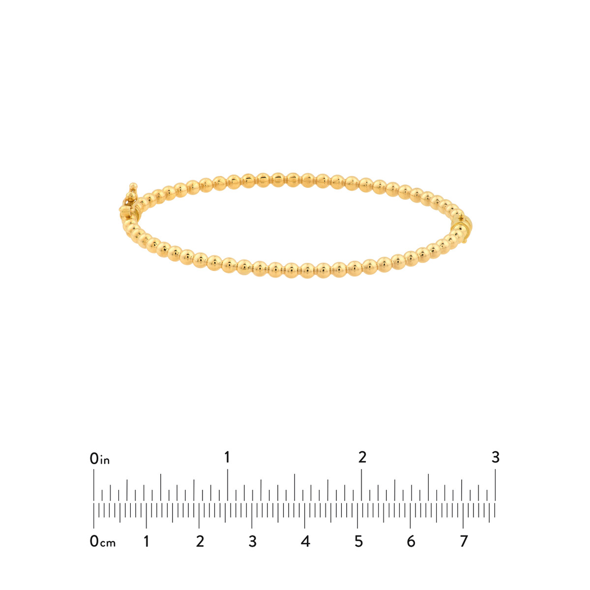 Elevate your wrist game with our stunning Ball Bangle Bracelet. Crafted from 10K yellow gold, this bangle boasts a polished ball design that catches the light beautifully. Wear it on its own for a touch of understated elegance, or stack it with other bangles for a bolder look. Its secure box lock closure ensures a comfortable and confident wear.