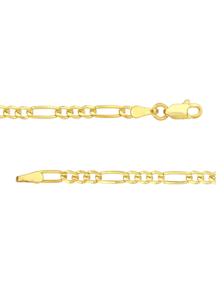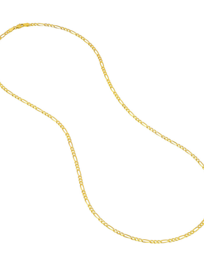 Elevate your style with this exquisite 10K yellow gold Figaro chain. The meticulously crafted 2.85mm links interlock seamlessly, creating a timeless and elegant design. The secure lobster clasp closure ensures a comfortable and effortless fit. This versatile chain is perfect for everyday wear or special occasions.