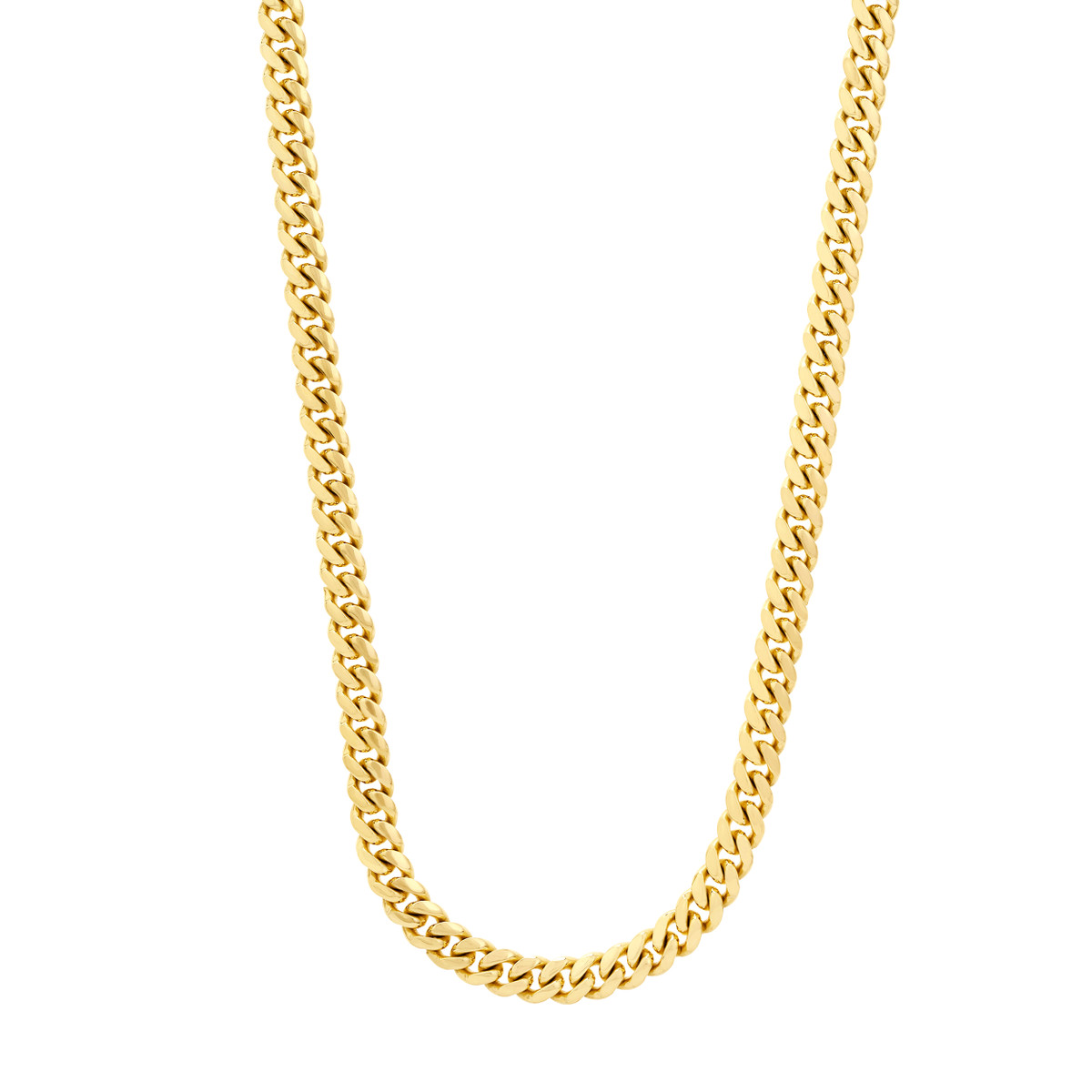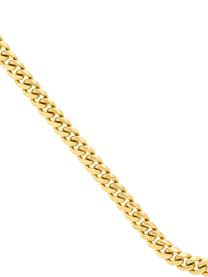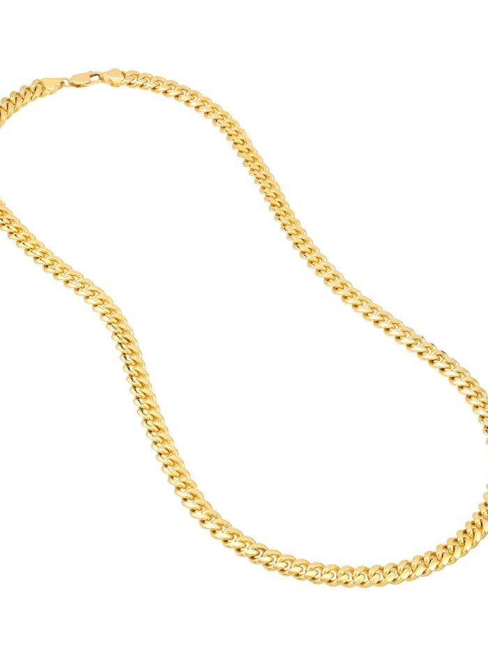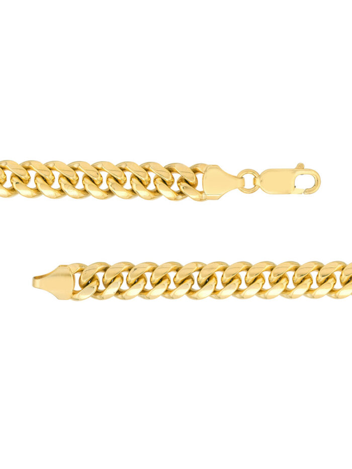 Make a statement with the timeless elegance of the Miami Cuban Chain. This dazzling chain, crafted from 14K yellow gold, is a popular style that exudes both sophistication and trendiness. Its iconic twisted links catch the light beautifully, adding a touch of luxury to any outfit. Securely fastened with a lobster clasp, this 9-inch chain is the perfect length to elevate your style.