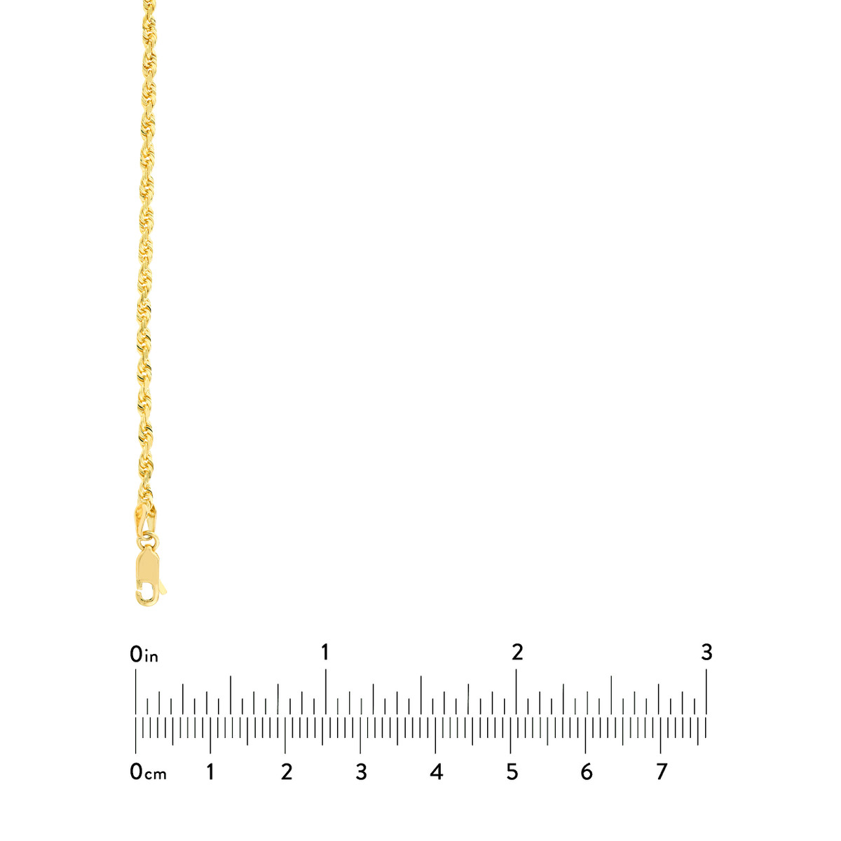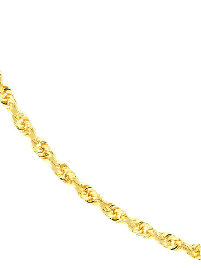 This stunning 10K yellow gold rope chain is a timeless classic. The diamond-cut design adds sparkle and dimension, while the secure lobster clasp ensures a comfortable and confident wear. Measuring 2.7mm wide and 20 inches in length, this chain is perfect for everyday wear or special occasions. Its luxurious look and feel make it a treasured addition to any jewelry collection.