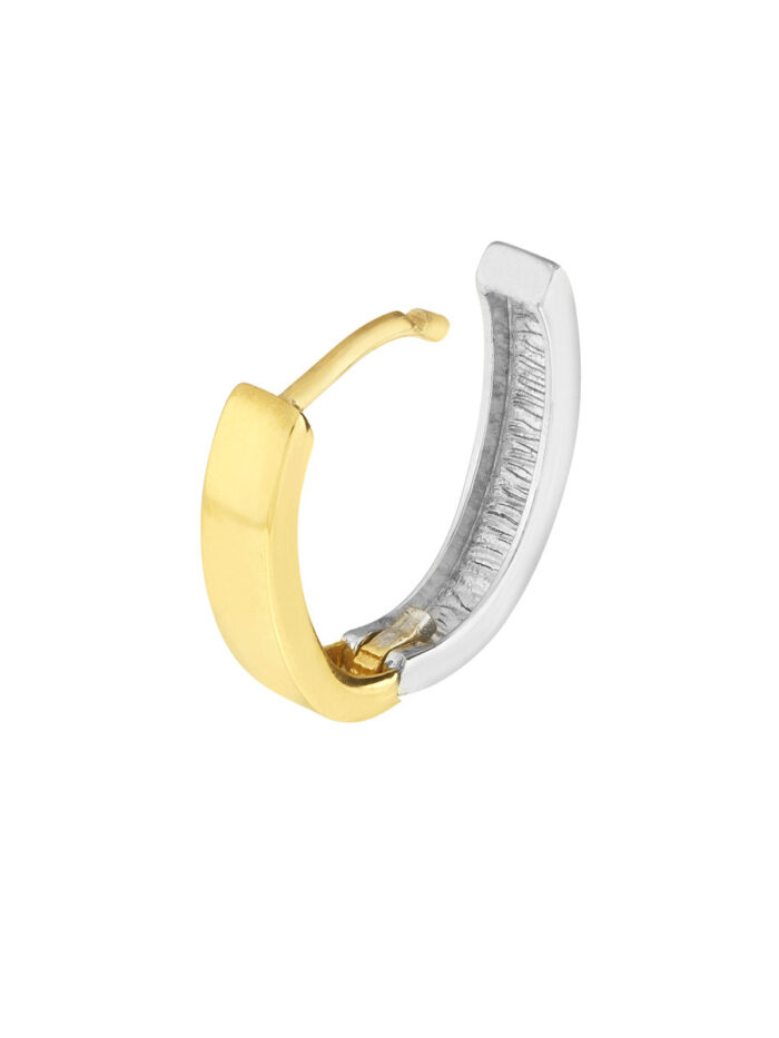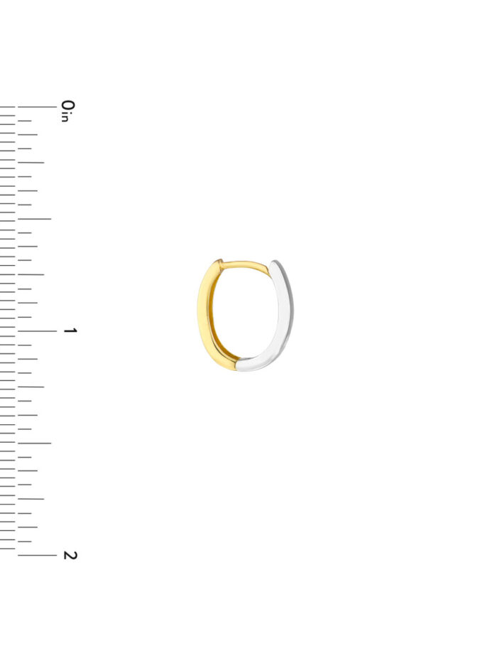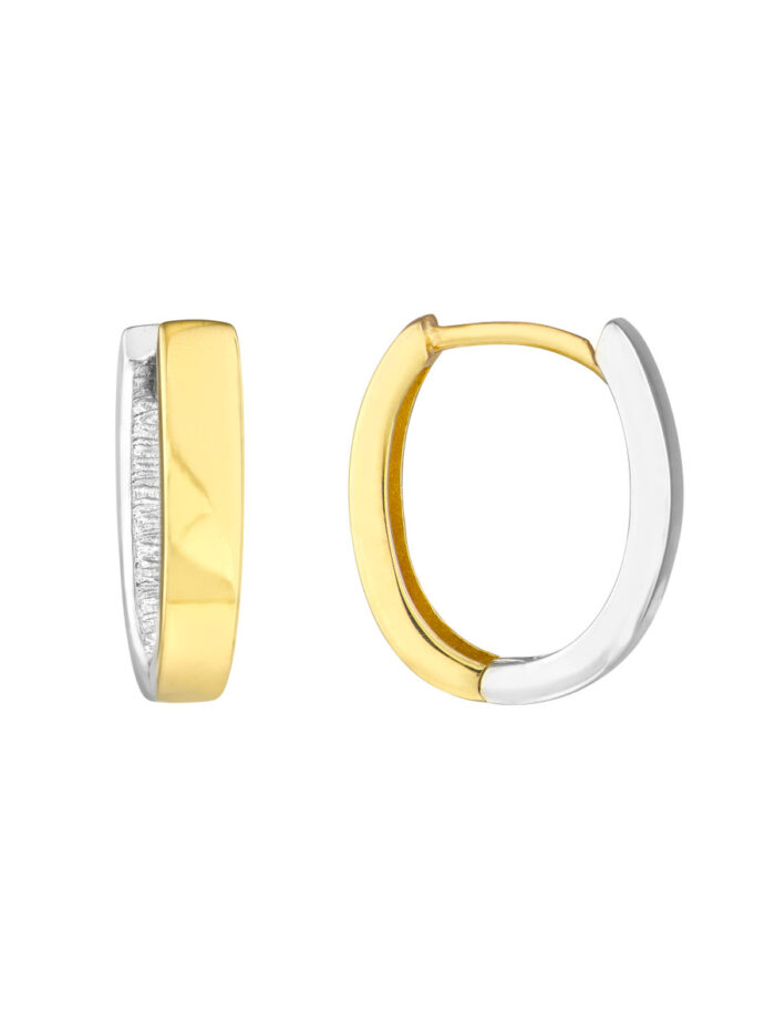 Make a statement with these stunning two-tone 10K gold oval hoop earrings. Crafted in a high polish finish, they boast the elegance of both yellow and white gold. The classic oval shape complements any face shape, while the hinge closure ensures a secure and comfortable wear.