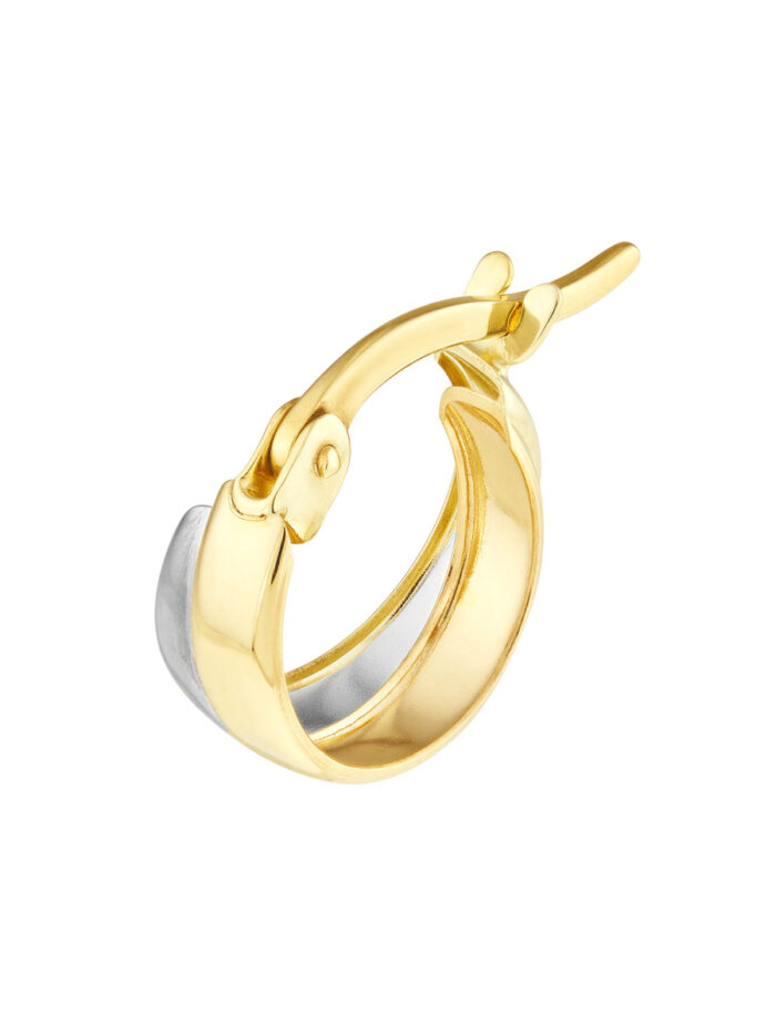 Our 10K Yellow & White Gold Two-Tone Side-by-Side Mini Hoop Earrings are a chic and modern take on a classic style. The miniature hoops are crafted from a blend of 10K yellow and white gold, creating a stylish two-tone look. The side-by-side design adds a touch of individuality and playfulness. Secure hinge closures make these earrings easy to wear.