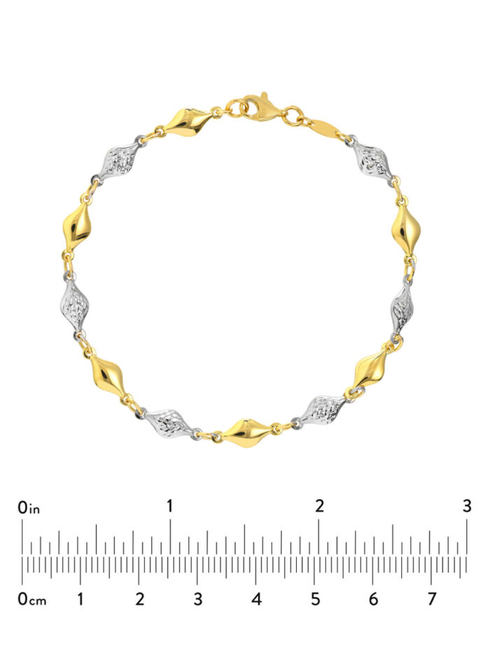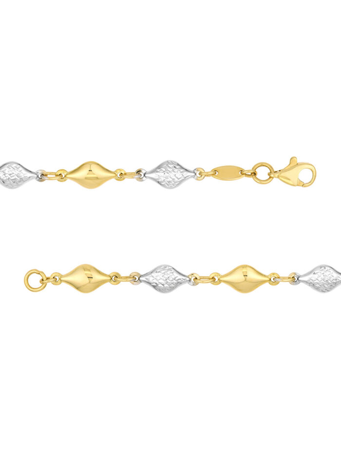 Experience the allure of this 14K Two-Tone Polished and Diamond-Cut Bead Bracelet. The combination of polished and diamond-cut beads creates a bracelet that is both elegant and playful. The shimmering blend of yellow and white gold adds a touch of sophistication to any look. The secure lobster closure ensures a comfortable and secure fit.