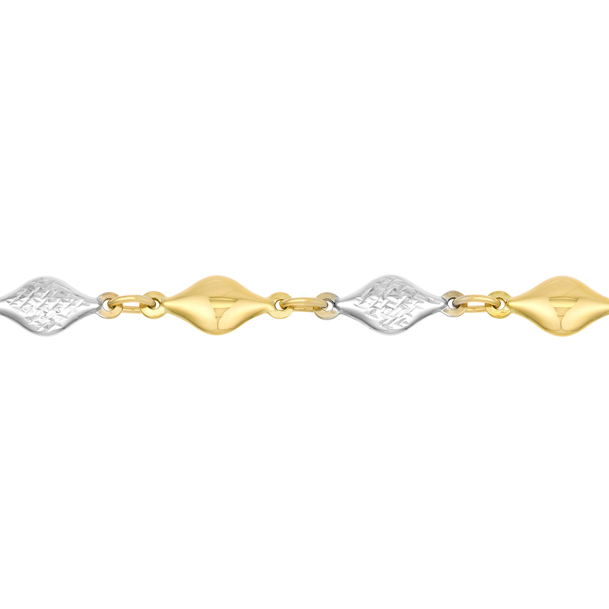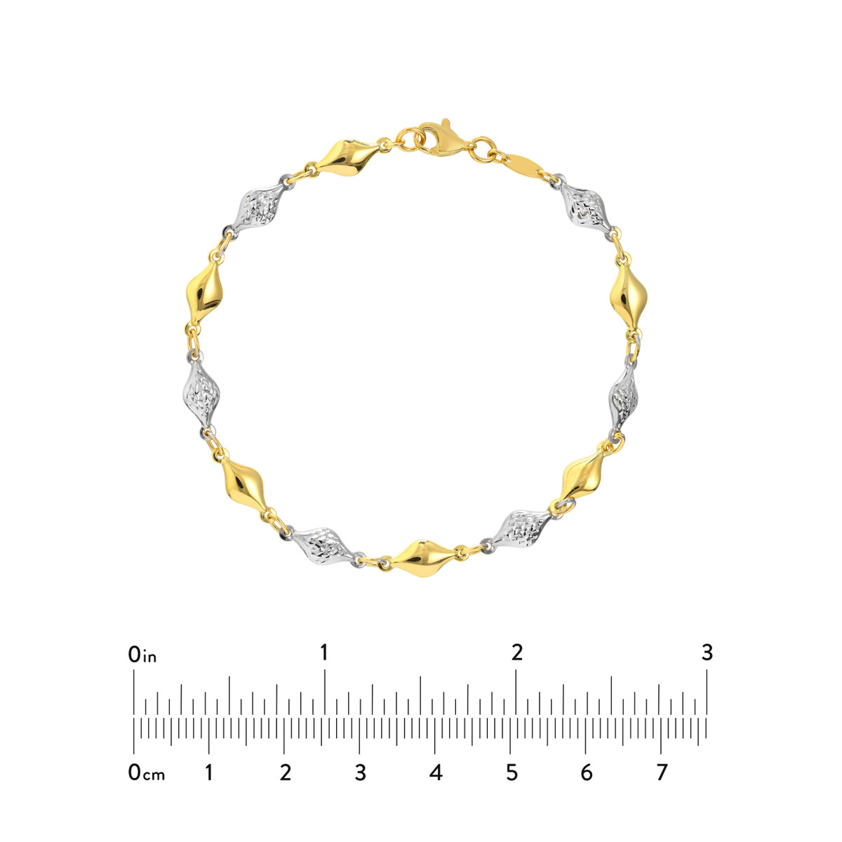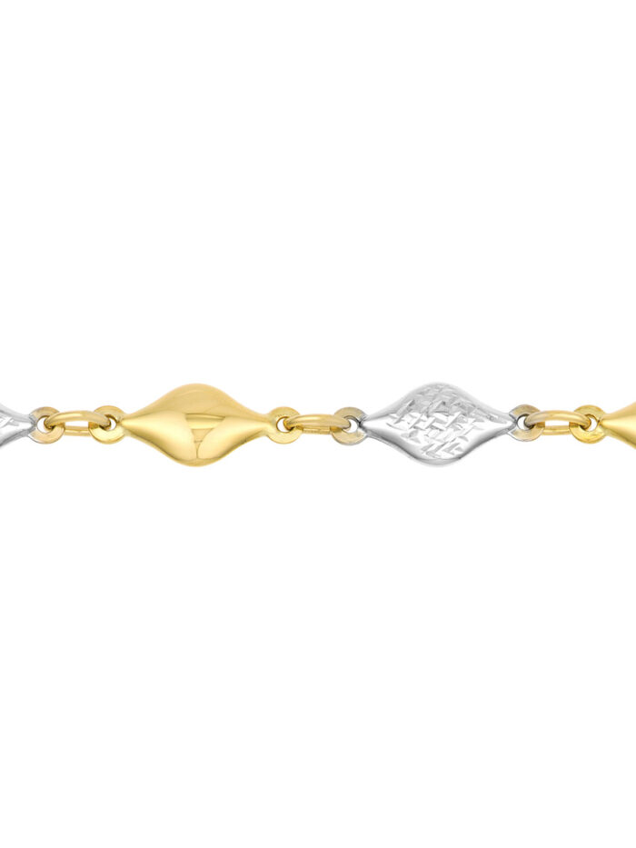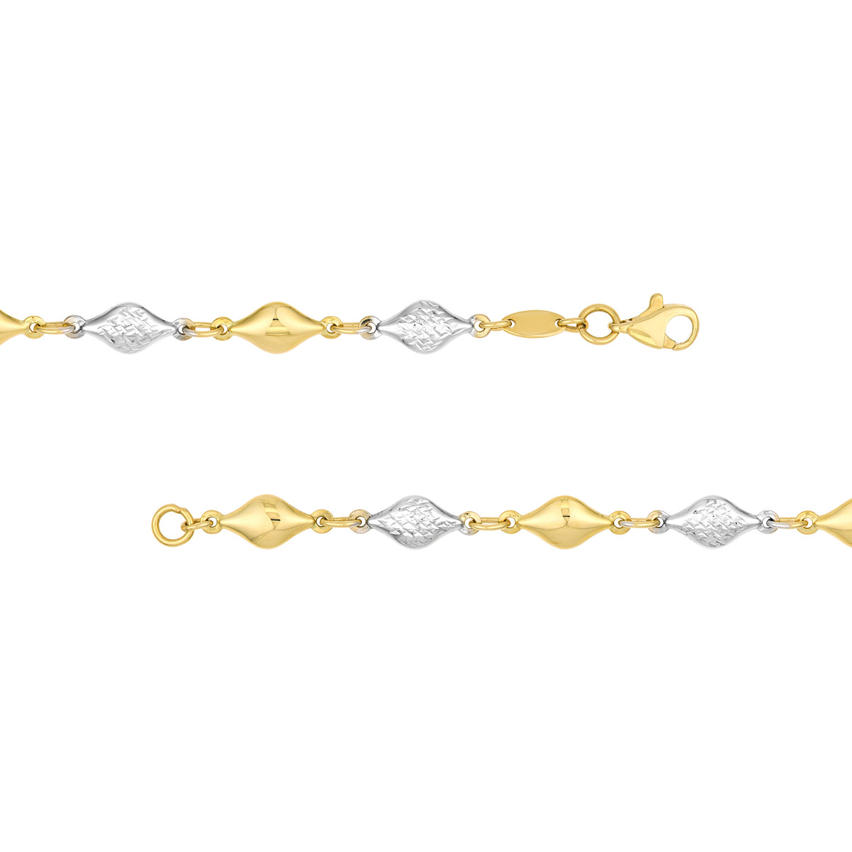 Experience the allure of this 14K Two-Tone Polished and Diamond-Cut Bead Bracelet. The combination of polished and diamond-cut beads creates a bracelet that is both elegant and playful. The shimmering blend of yellow and white gold adds a touch of sophistication to any look. The secure lobster closure ensures a comfortable and secure fit.