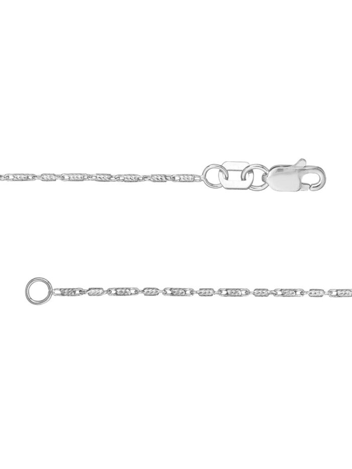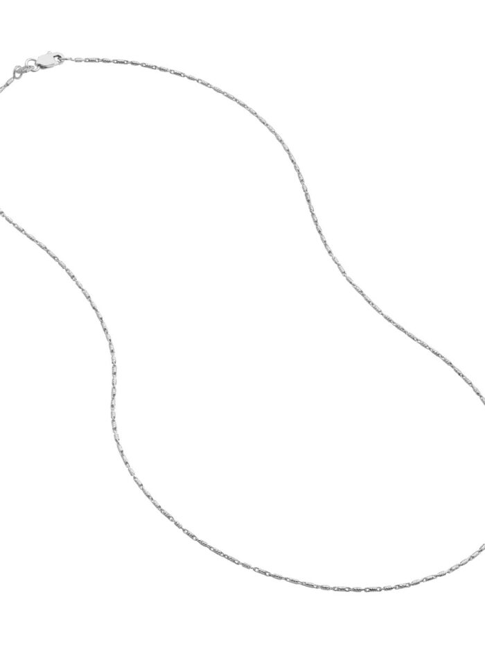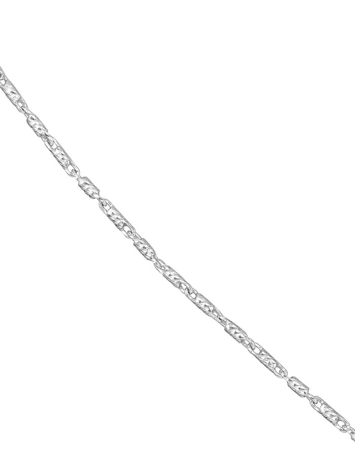 This exquisite 14K white gold Tube Bead Chain is a timeless piece that will add a touch of elegance to any outfit. The diamond-cutting featured on each bead catches the light beautifully, making it truly sparkle. Secured with a lobster clasp for a secure and comfortable fit, this chain is perfect for pendants or worn alone as a delicate statement piece.