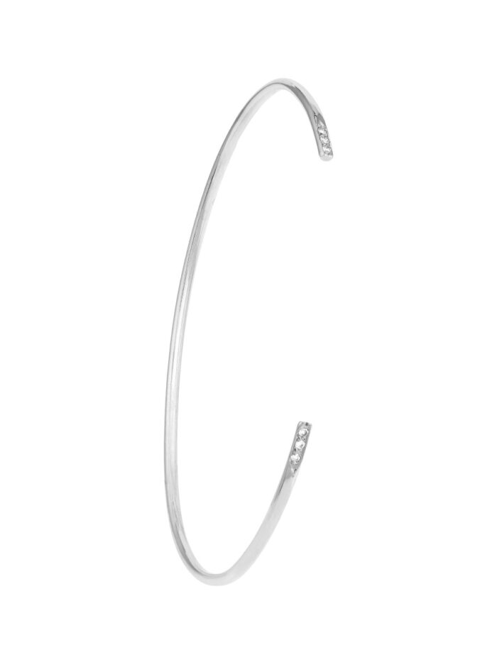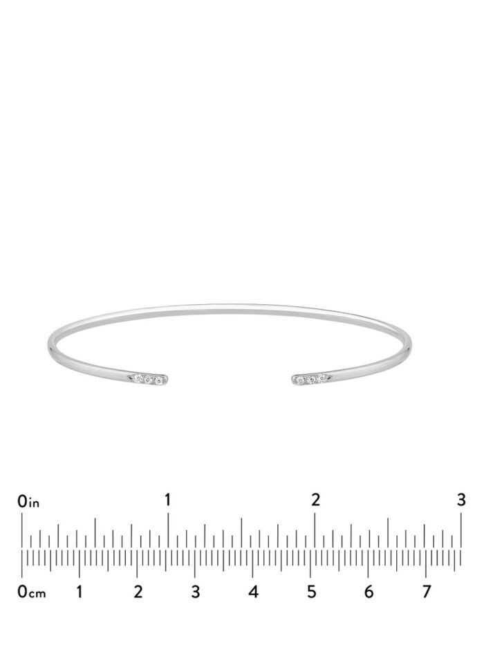 Elevate your wrist game with this stunning 14K white gold bangle cuff, adorned with delicate diamond accents. This piece adds a touch of brilliance and sophistication to any look, making it perfect for everyday wear or special occasions. Designed to be a statement piece, it complements a variety of styles and adds a touch of luxury to your jewelry collection.
