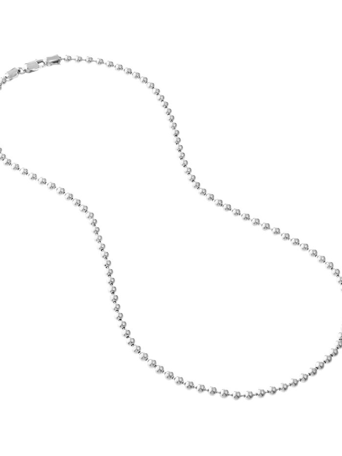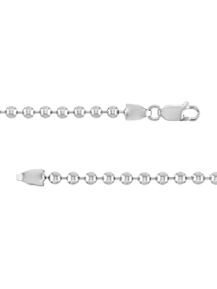 Add a touch of elegance to your look with this stunning 14K white gold bead chain. Featuring 3.5mm beads, this chain necklace makes a statement on its own or can be layered with other necklaces for a personalized touch. The secure lobster closure ensures a comfortable and reliable wear. At 8.5 inches in length, it’s the perfect size to showcase your style.