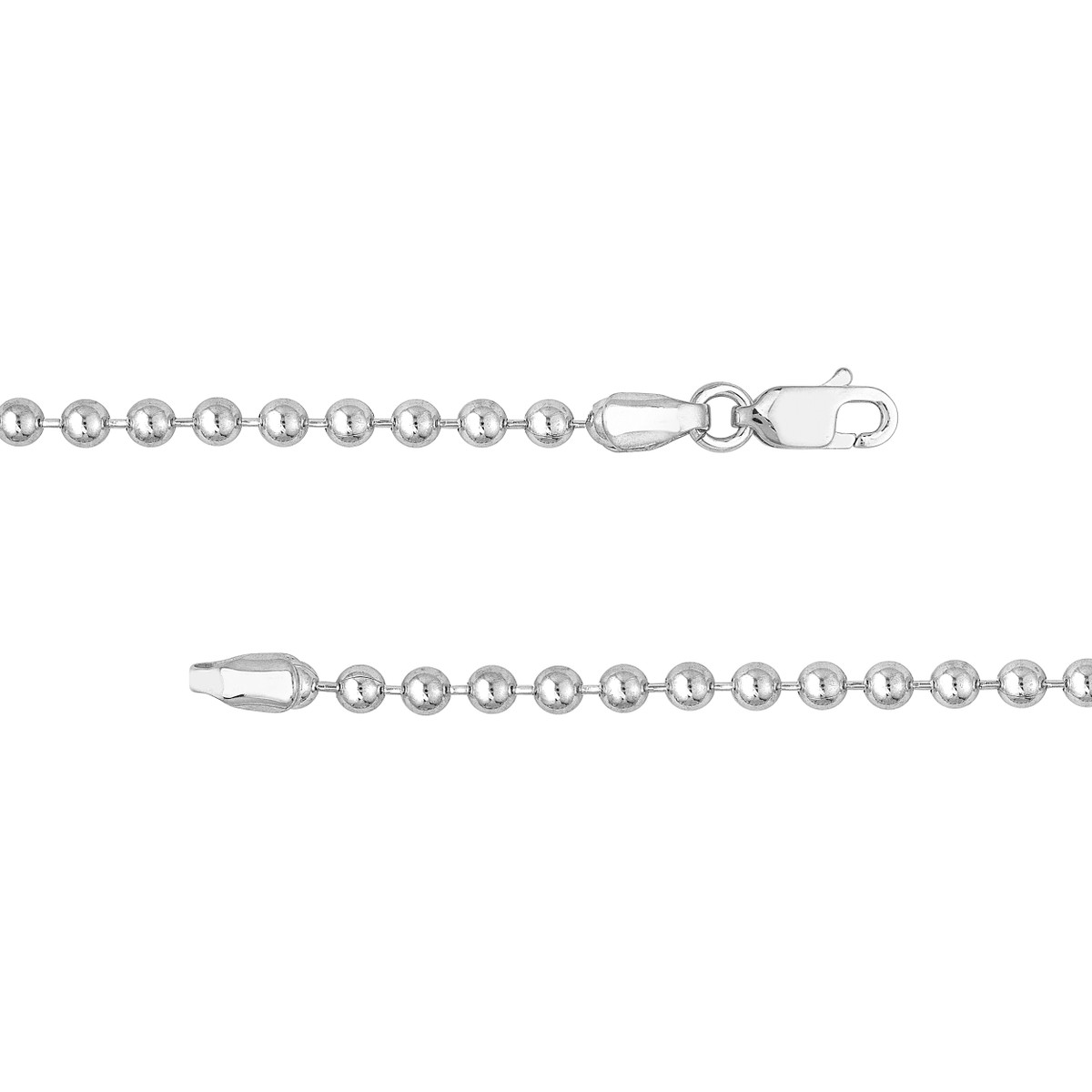 Indulge in the brilliance of this exquisite 14K white gold bead chain. Featuring 3mm beads, it exudes a modern elegance that adds a touch of sophistication to any ensemble. The secure lobster clasp closure ensures a comfortable and confident fit. At 18 inches in length, it’s perfect for layering or wearing on its own. This chain is a timeless piece that will elevate your style for years to come.