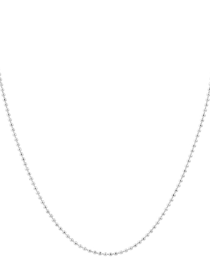 Elevate your style with this exquisite 14K white gold bead chain. The delicate 0.8mm width adds a touch of understated elegance, while the timeless design complements any look. Securely fastened with a spring ring clasp, this chain is perfect for layering or wearing solo.