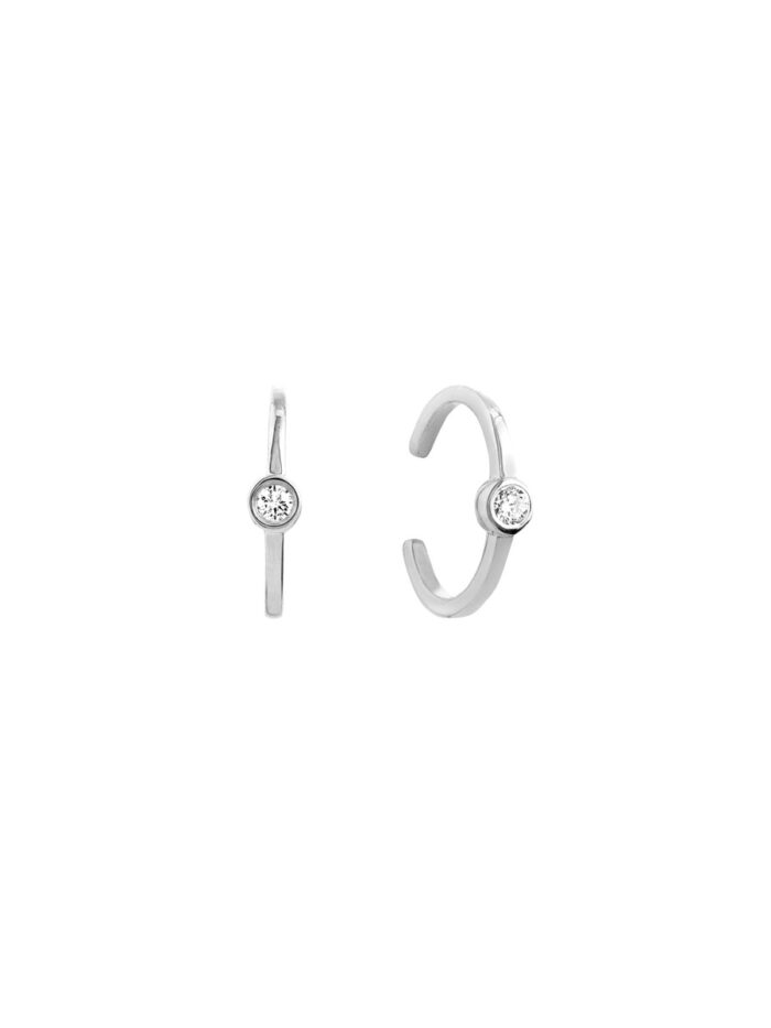 Make a statement with these exquisite 14K white gold ear cuffs featuring a dazzling bezel-set diamond. The minimalist design perfectly showcases the beauty of the diamond, adding a touch of sparkle to any outfit. Wear one for a subtle accent or both for a more dramatic look. Crafted from durable and lightweight white gold, these ear cuffs are a timeless addition to your jewelry collection.