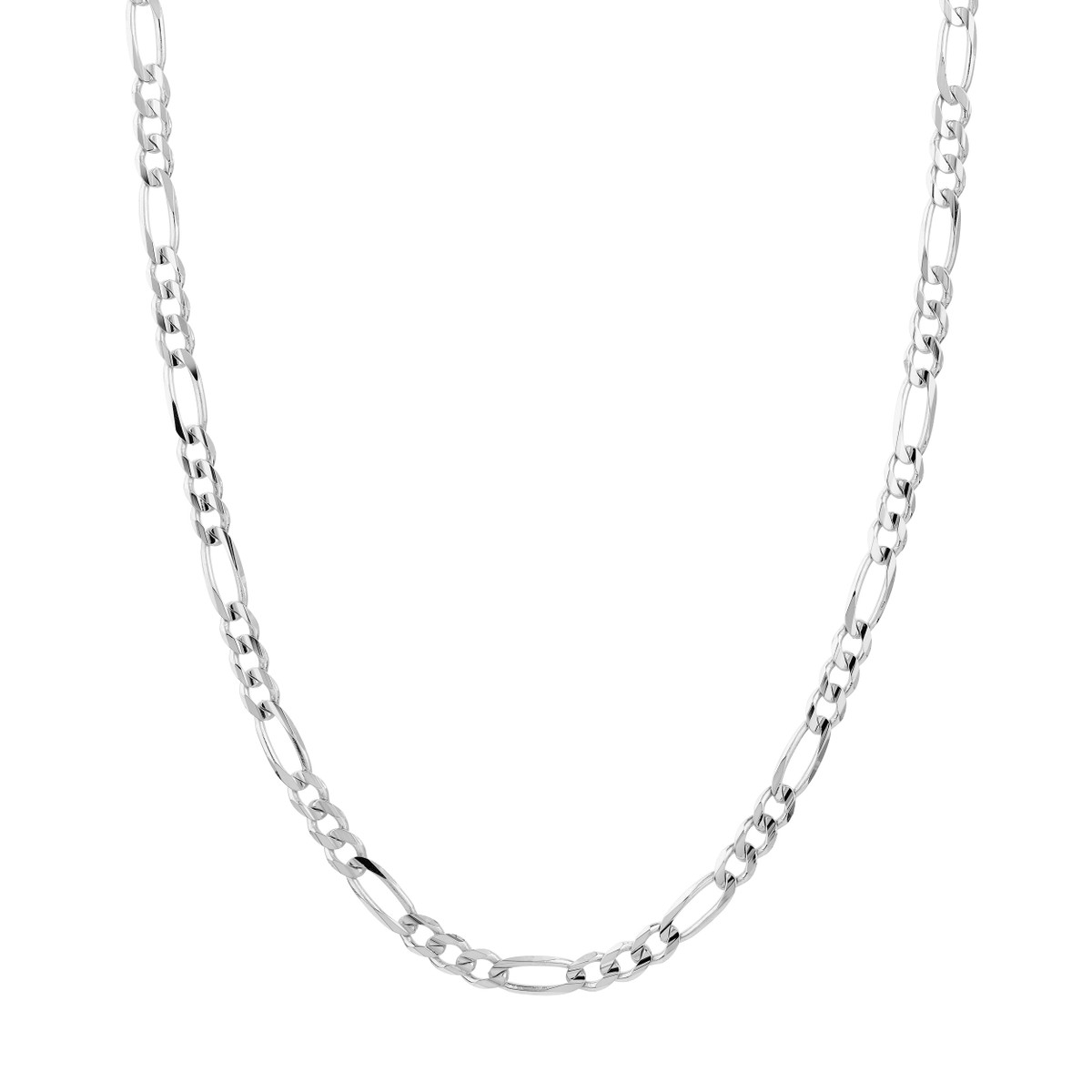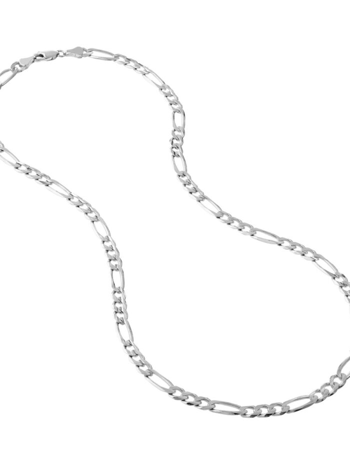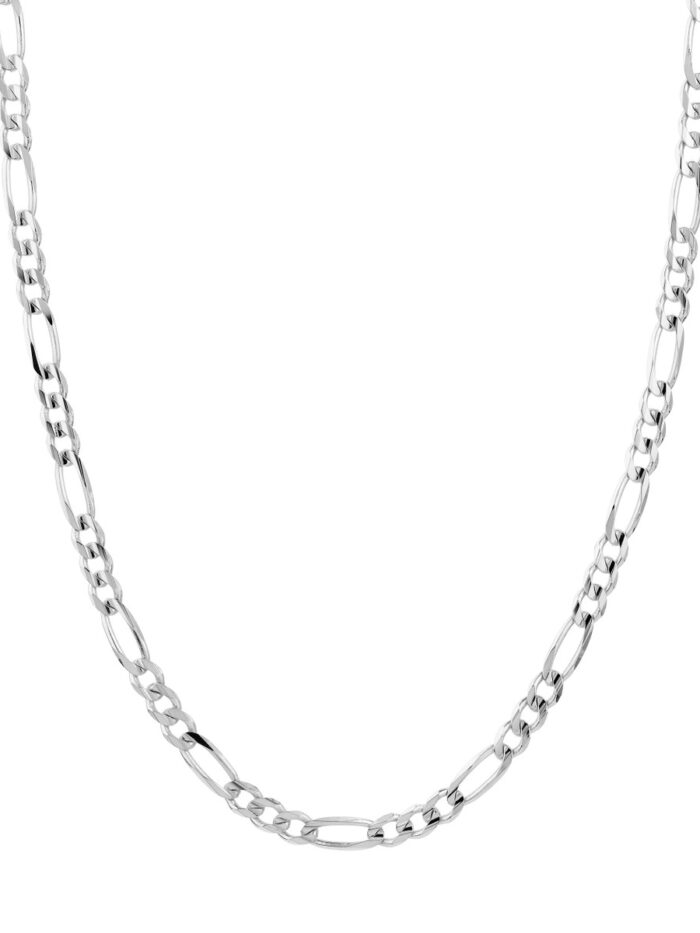 Experience the intricate beauty of our 14K White Gold Concave Figaro Chain. This stunning necklace, crafted with meticulous attention to detail, features the signature, eye-catching Figaro design with its alternating oval and round links. Its 5.8mm width makes a bold statement while remaining elegant. Secured with a reliable lobster clasp, this chain is perfect for both everyday wear and special occasions.