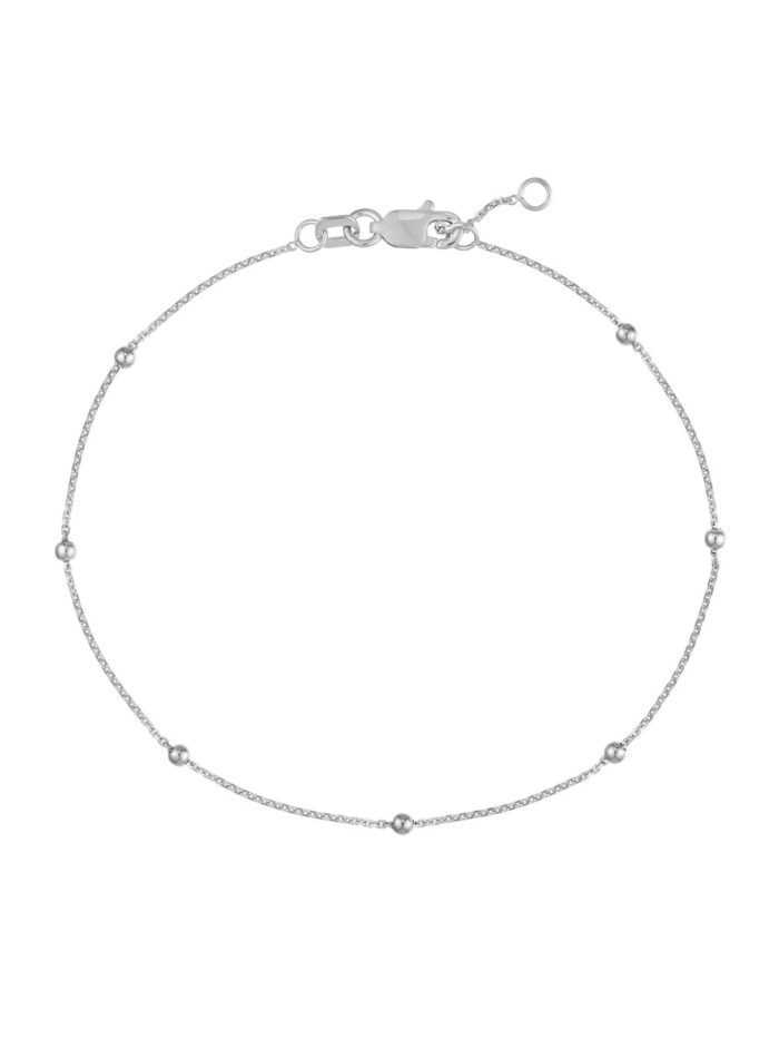 Elevate your style with this exquisite 14K white gold Diamond-Cut Cable Chain bracelet. Featuring dainty 2mm bead stations, this bracelet adds a touch of elegance to any outfit. Crafted from high-quality 14K white gold, this bracelet is both durable and luxurious. The adjustable clasp ensures a perfect fit, making it a versatile accessory for everyday wear.