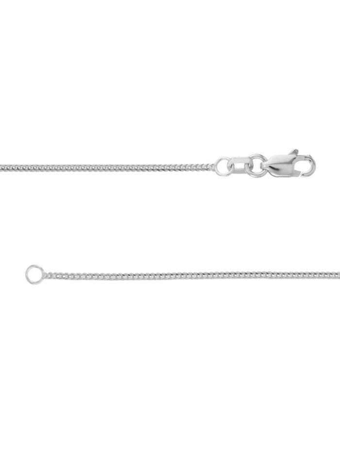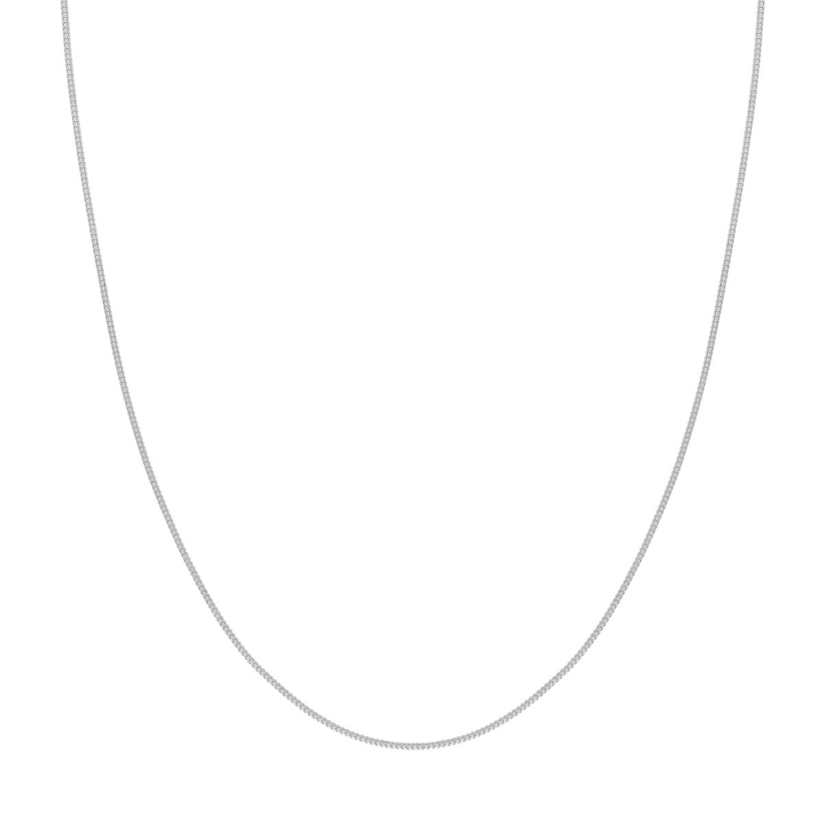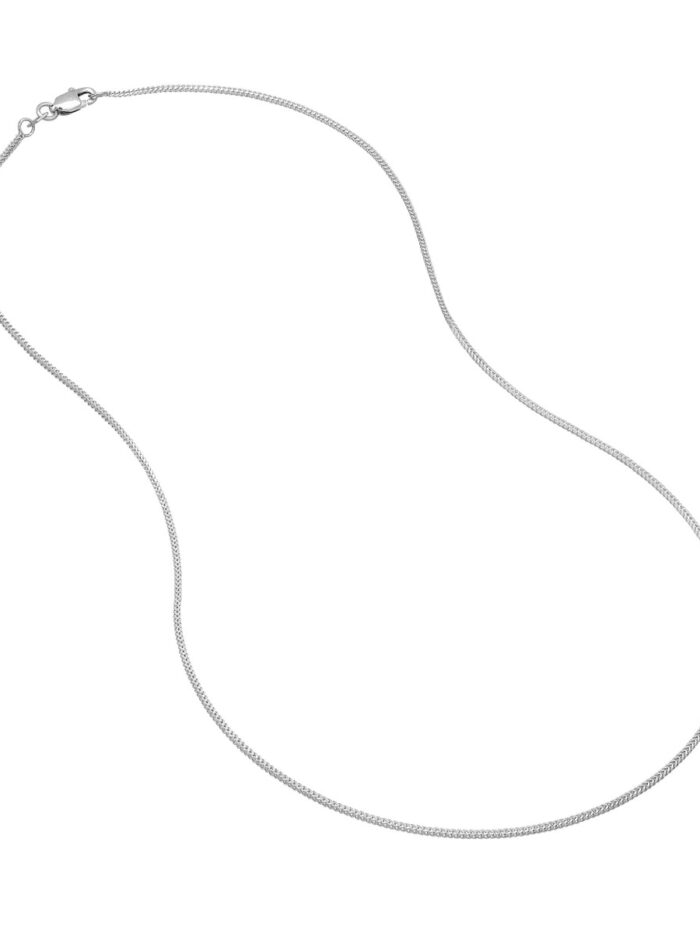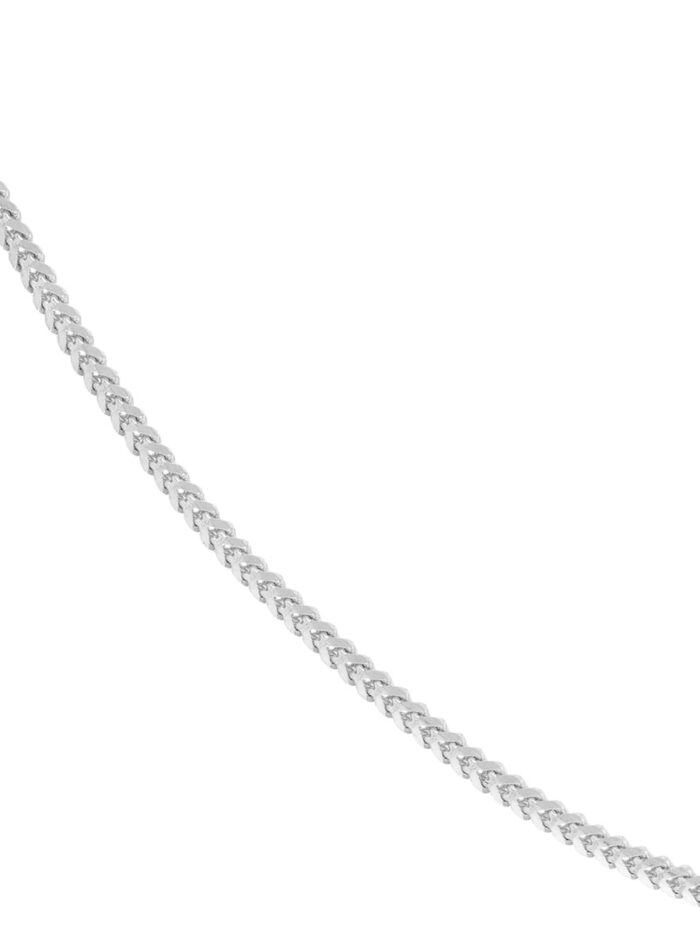 Make a statement with this sleek 14K white gold Franco Chain. The classic Franco design, featuring interlocking oval links, adds a touch of understated elegance to any outfit. Securely fastened with a lobster clasp, this chain is perfect for layering or wearing solo. At 16 inches in length, it gracefully rests on your neckline, making a subtle yet sophisticated impression.