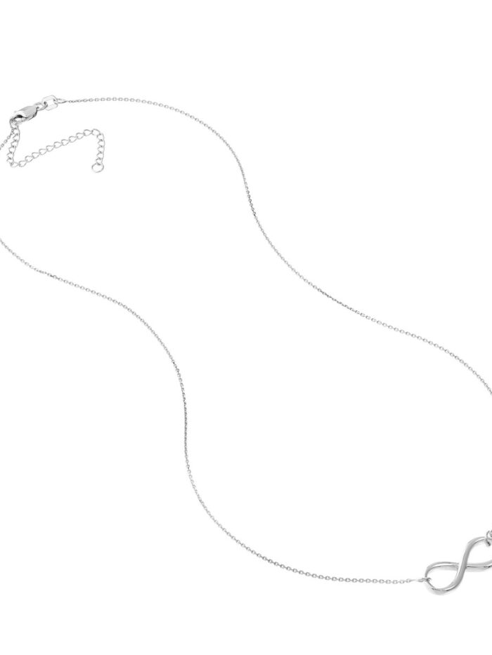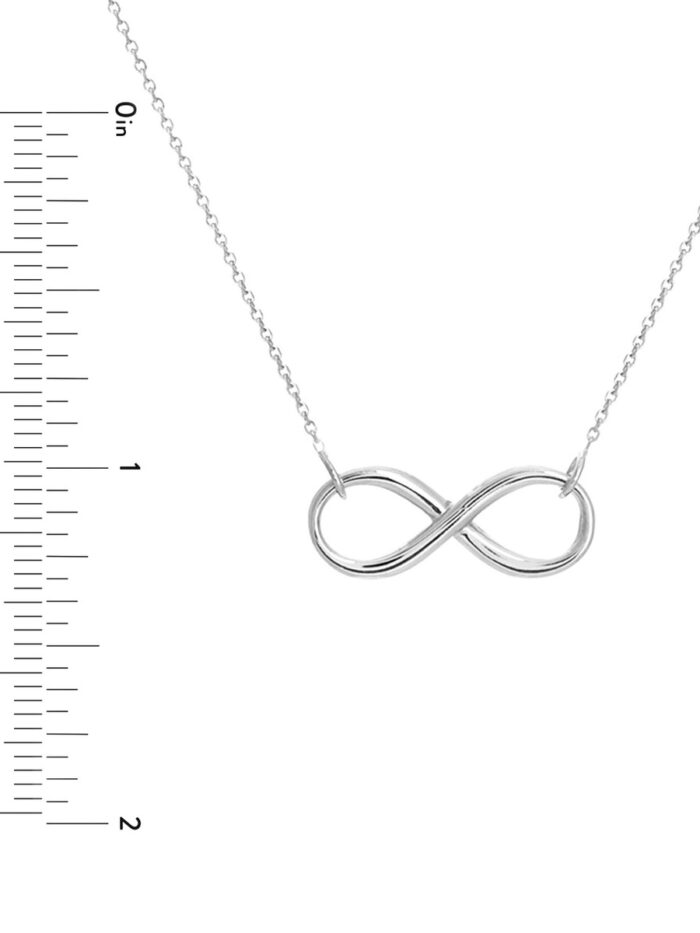 Celebrate everlasting love with this stunning 14K white gold infinity necklace. The delicate infinity symbol represents boundless connection and devotion. Crafted in gleaming white gold, this necklace features a sleek snake chain that gracefully drapes around the neck. The adjustable clasp allows for a customized fit, making it a perfect gift for any occasion.