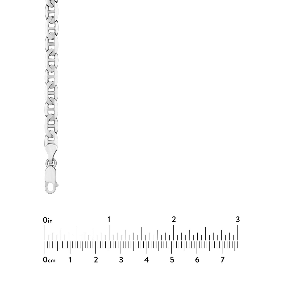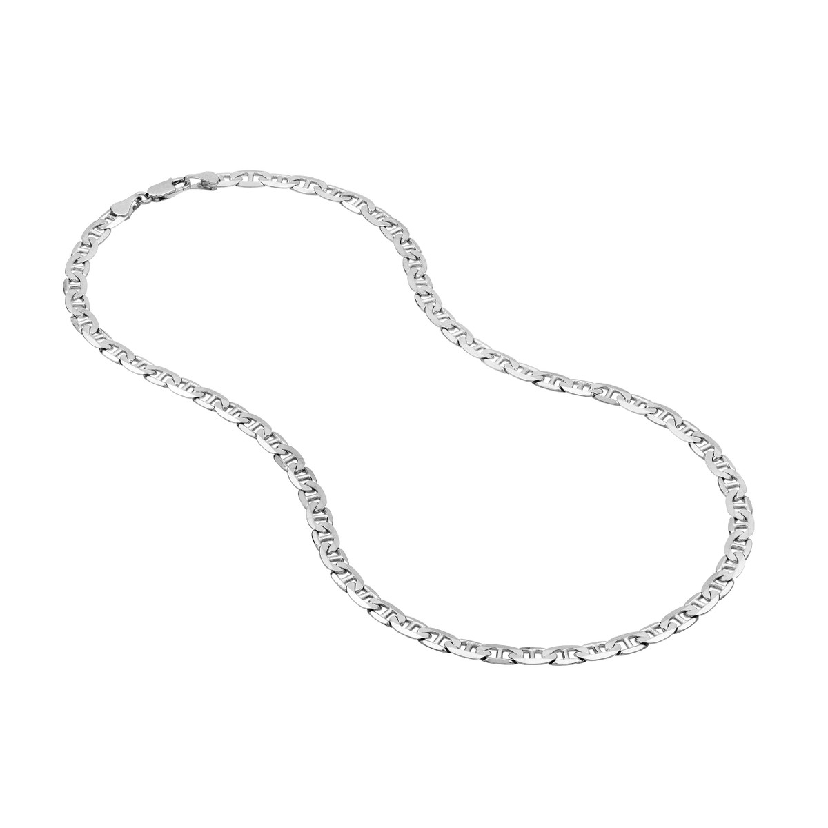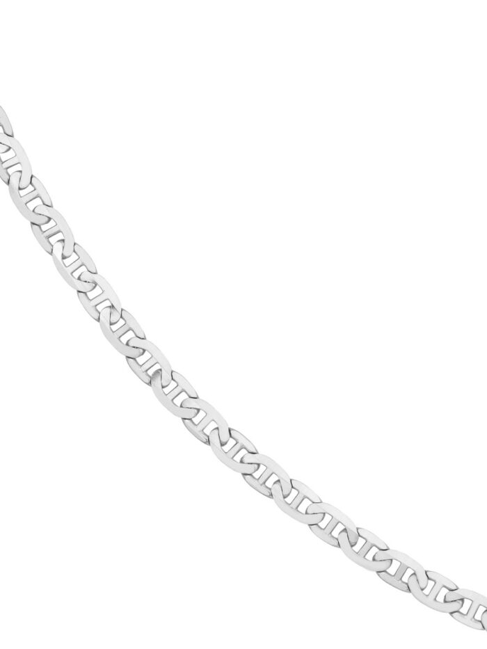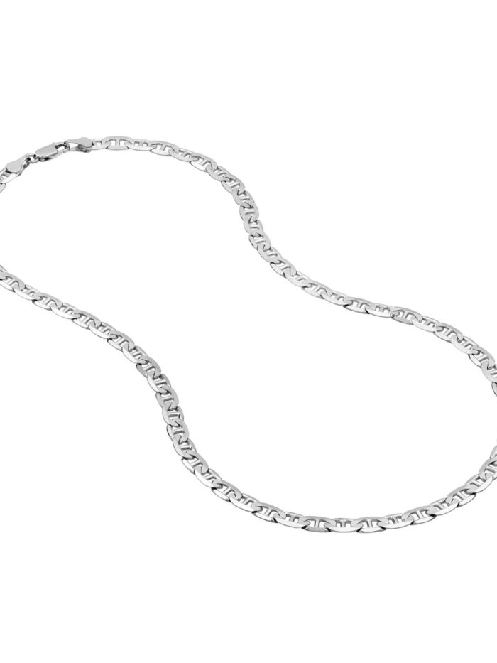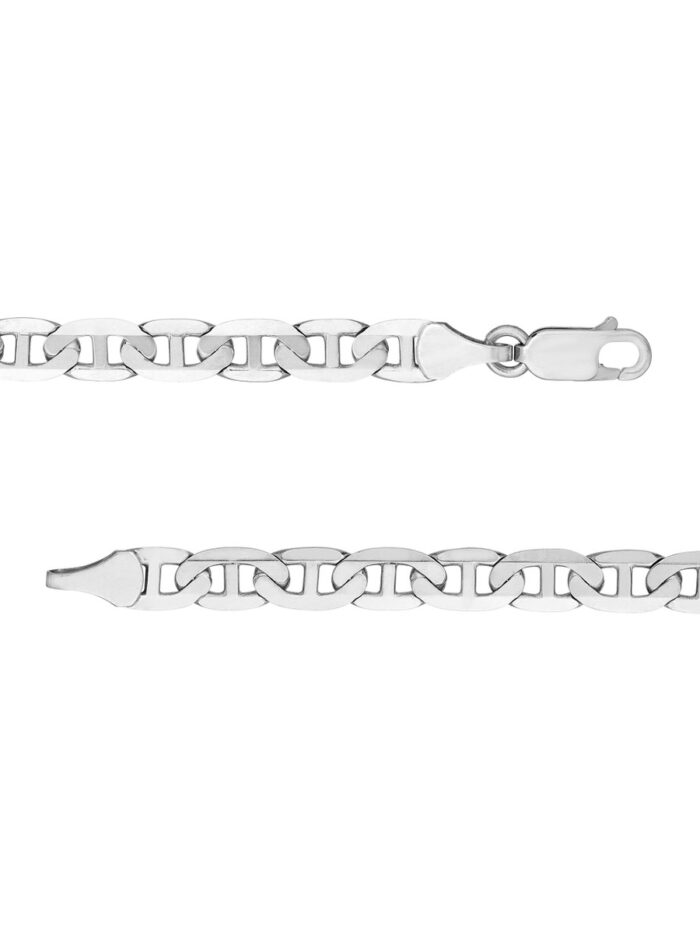 Make a statement with this eye-catching 14K White Gold Mariner Chain. The distinctive Mariner design adds a touch of nautical elegance, while the 5.6mm width ensures a bold presence. Crafted from lustrous 14K White Gold, this chain is both beautiful and durable. A secure Lobster Lock closure keeps it in place, making it perfect for everyday wear or special occasions.