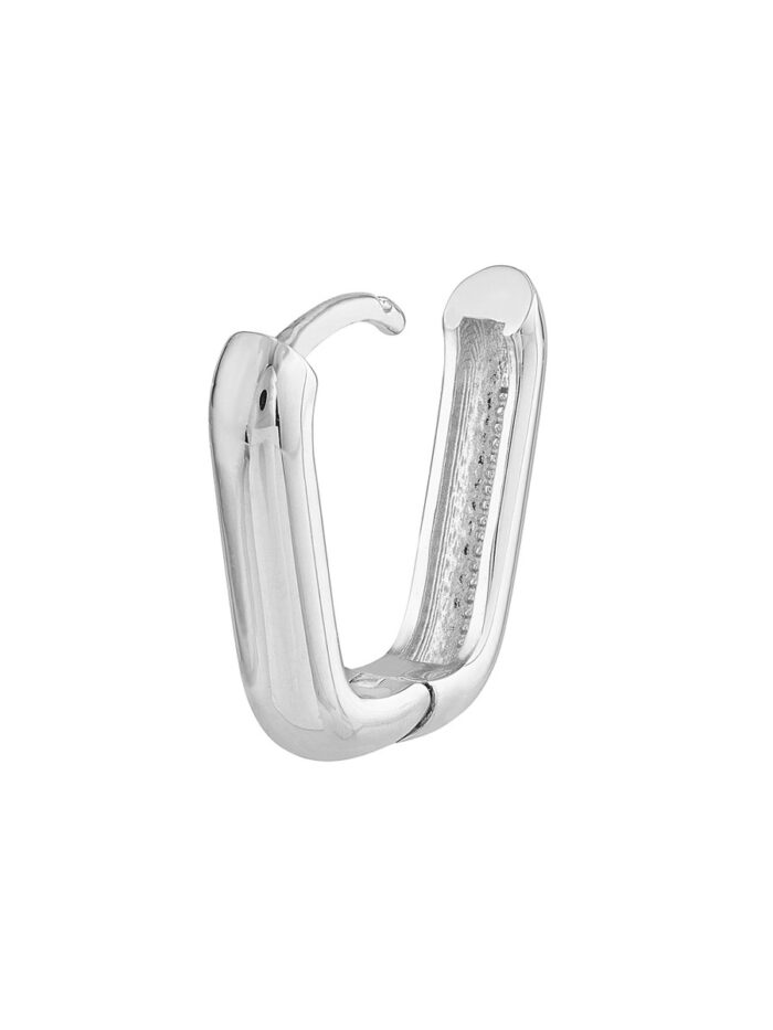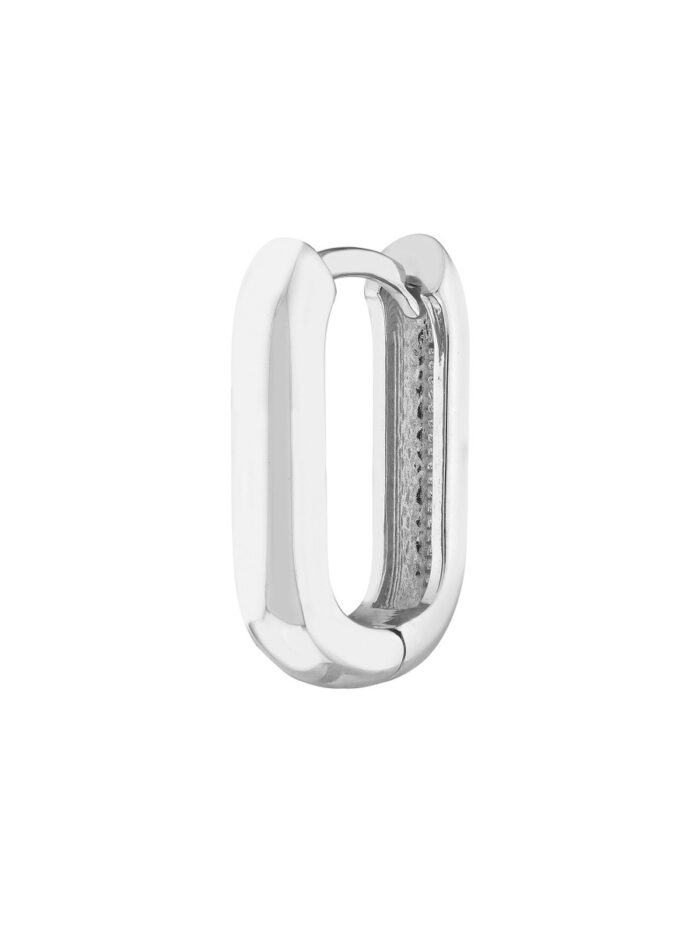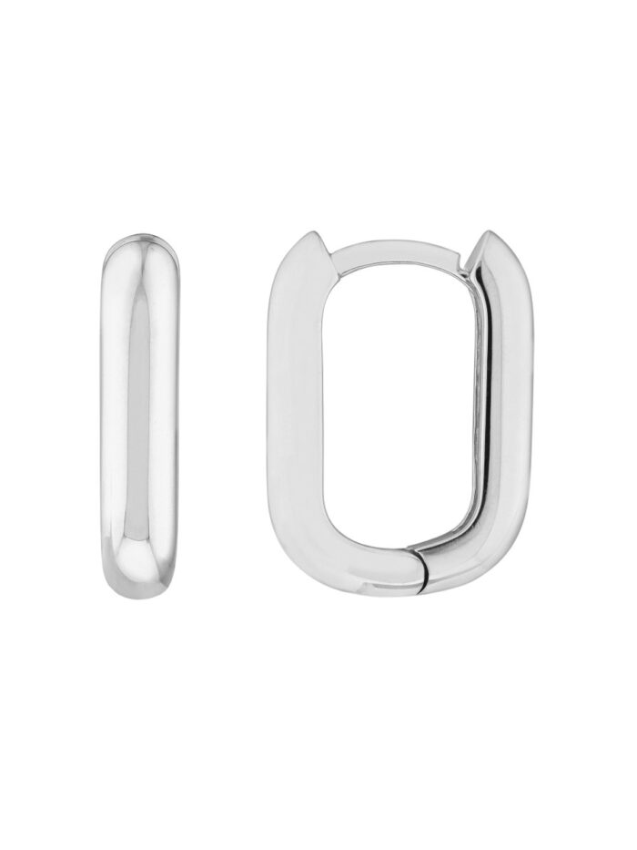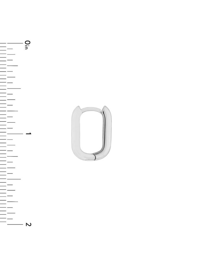 Add a touch of modern sophistication to your ear game with these 15mm oblong mini hoops crafted in shimmering 14K white gold. The hinged closure ensures a secure and comfortable fit, allowing you to wear them with confidence. Their elegant oblong shape complements a variety of styles.