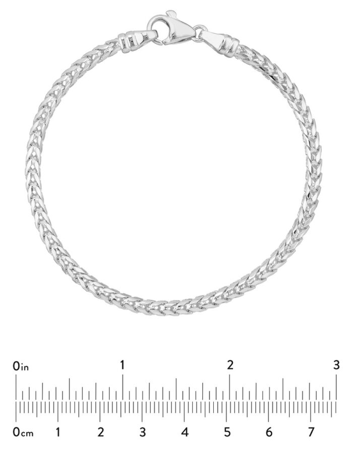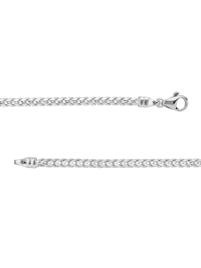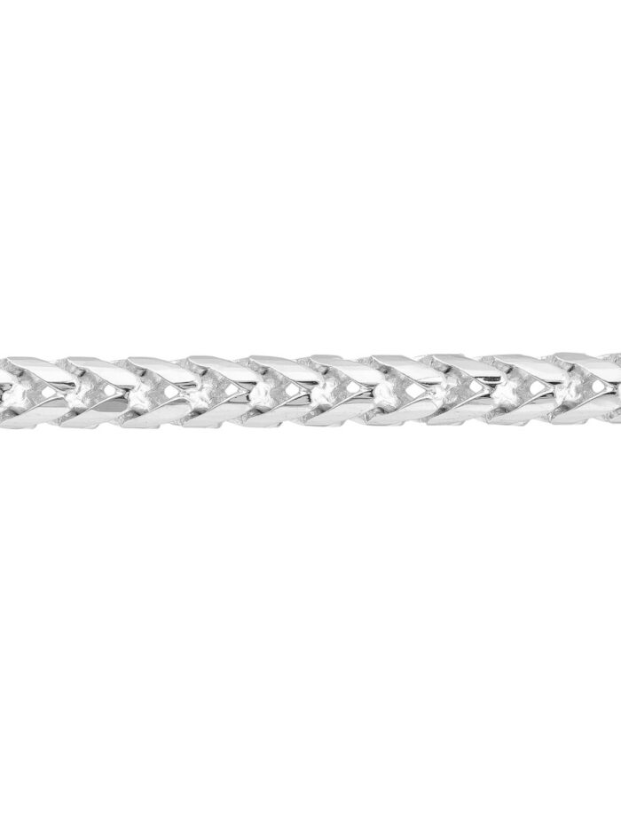 Elevate your wrist game with this stunning 14K white gold Franco chain bracelet. The 3.65mm round diamond cut links catch the light beautifully, adding a touch of sparkle to any outfit. The secure pear shape lobster closure ensures it stays comfortably on your wrist. Measuring 8.5 inches in length, this bracelet is the perfect addition to your collection, whether worn alone or stacked with other favorites.