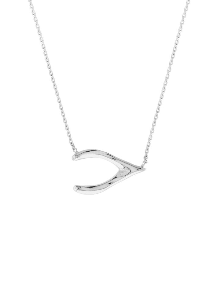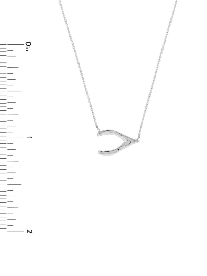 Embrace good fortune with this charming sideways wishbone necklace. This iconic symbol of luck and hope is crafted in gleaming 14K white gold, adding a touch of elegance to any look. Suspended from an adjustable cable chain, the pendant can be customized to your perfect fit. The secure lobster clasp ensures lasting wear.
