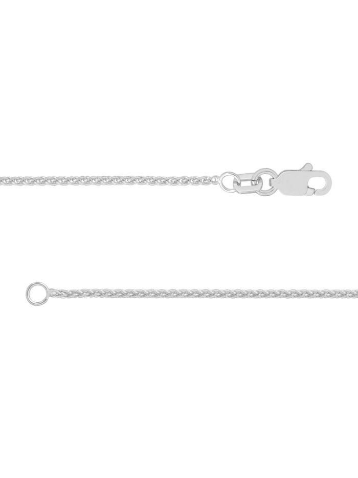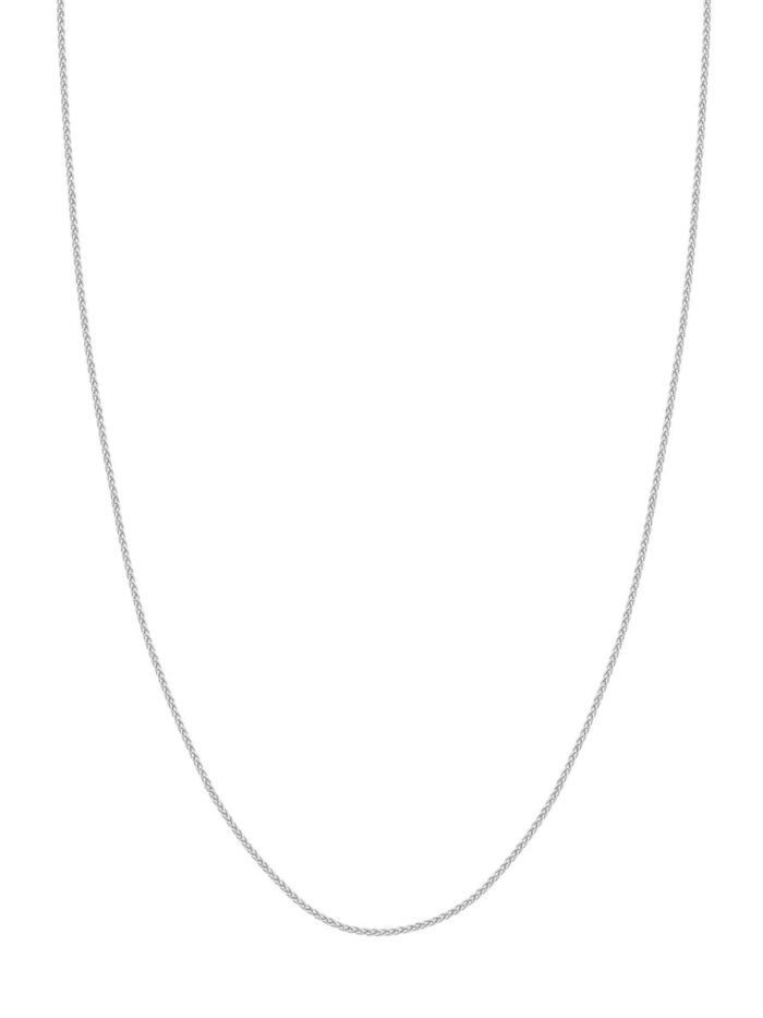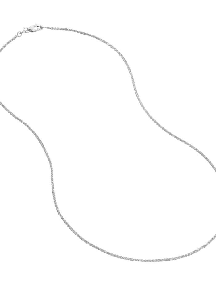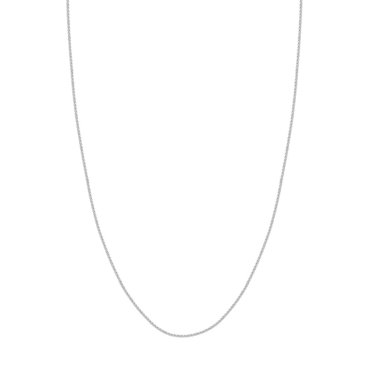 Add a touch of luxury to your jewelry collection with this exquisite 14K White Gold Wheat Chain. Its delicate and intricate design adds a timeless elegance, perfect for both everyday wear and special occasions. The secure lobster lock closure ensures your pendant hangs safely and comfortably. This chain measures 1.25mm wide and is a graceful 16 inches in length, making it a versatile choice for layering or wearing solo.