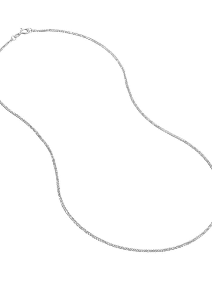 Our 14K White Gold Wheat Chain Necklace is a stunning blend of classic style and modern design. The intricately woven wheat pattern creates a unique and eye-catching look. This lightweight chain is hollow, making it comfortable to wear all day long. The secure spring ring clasp ensures your necklace stays put.
