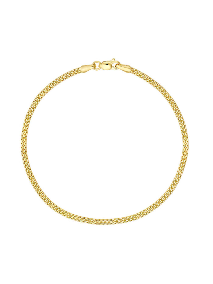 Embrace sophistication with our 14K yellow gold woven box chain bracelet. Crafted with meticulous attention to detail, this bracelet features a timeless design that complements any style. The woven links create a delicate yet durable piece that will elevate your everyday look. The secure lobster clasp ensures a comfortable and confident fit.