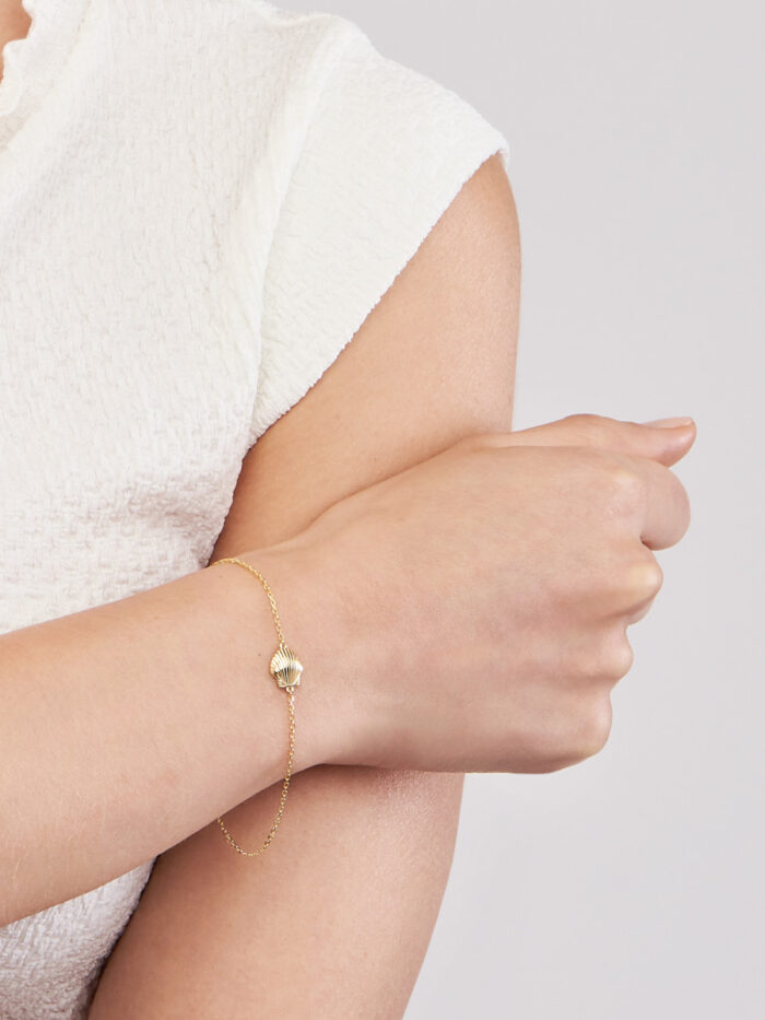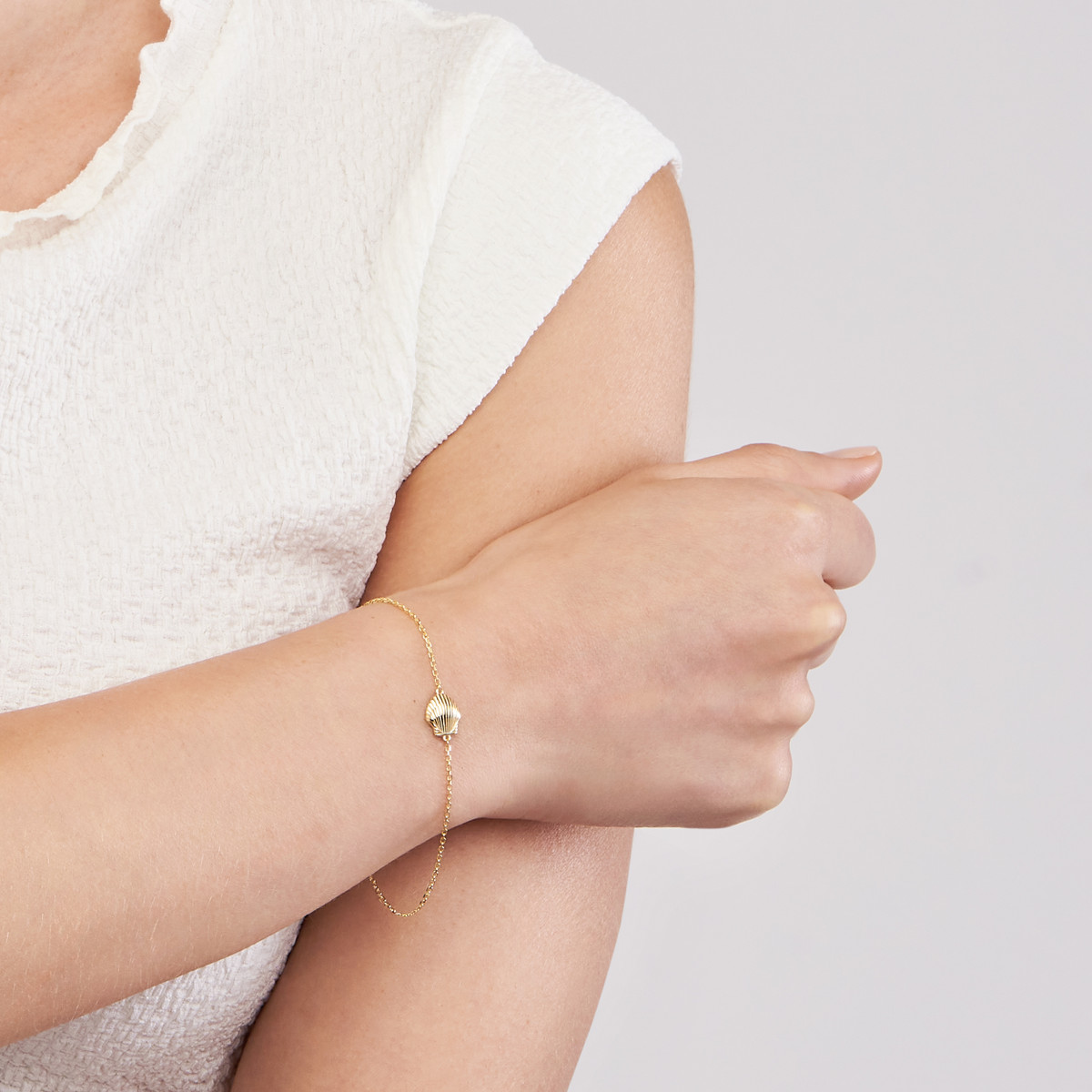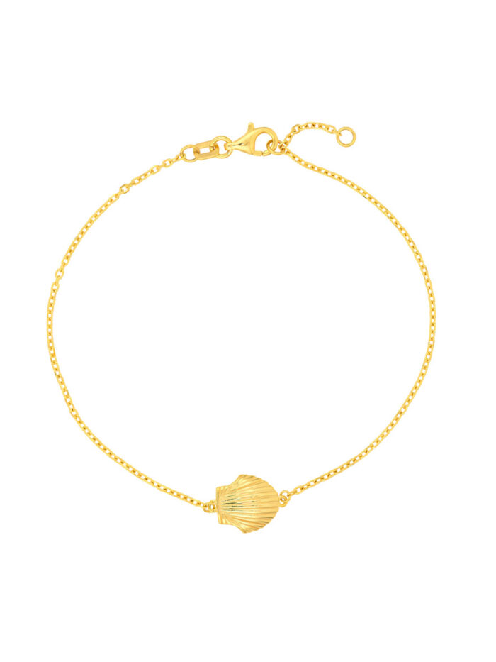 Embrace the summer spirit with our exquisite 14K yellow gold seashell bracelet. This delicate piece features a charming seashell design, symbolizing the beauty and tranquility of the ocean. Crafted from lustrous 14K yellow gold, it’s both elegant and durable. The adjustable clasp ensures a comfortable fit for any wrist.