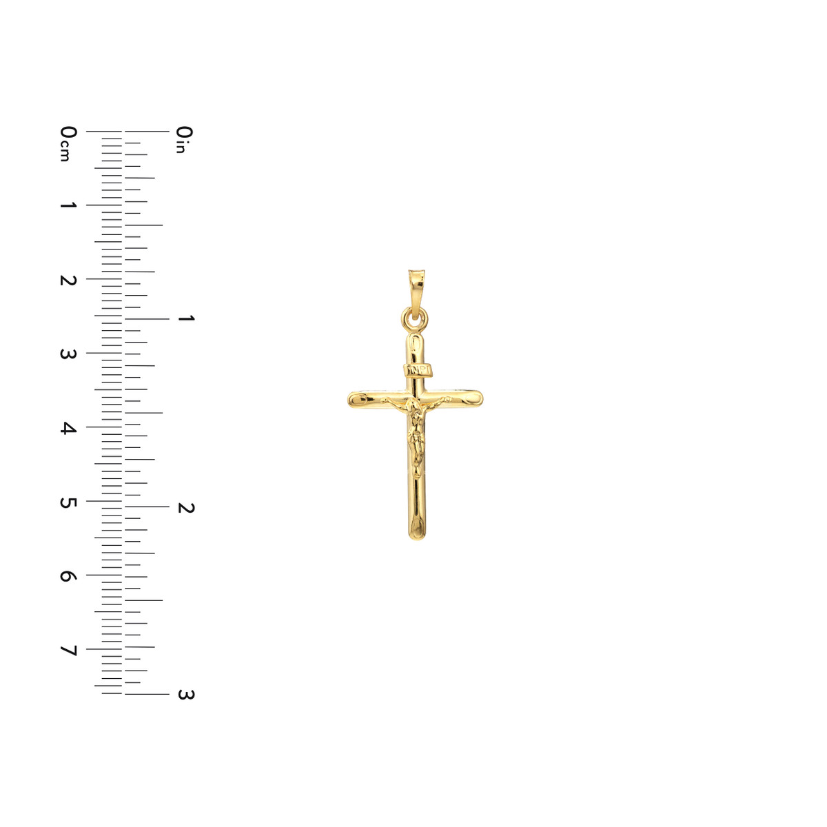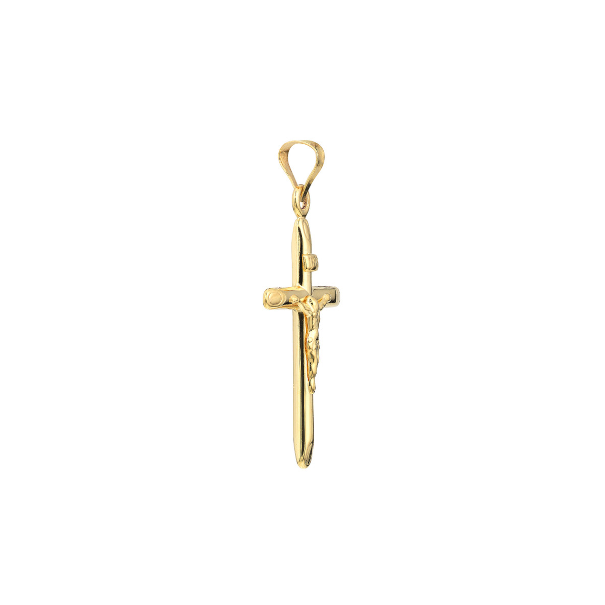 This simple yet meaningful 14K Yellow Gold Crucifix Pendant is the perfect symbol of faith. Crafted in a delicate 3D design, the pendant features a secure bail closure, making it easy to attach to your favorite chain. A thoughtful gift for religious occasions or personal affirmation, this timeless piece adds a touch of reverence to any look.