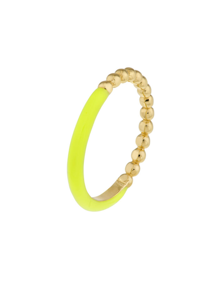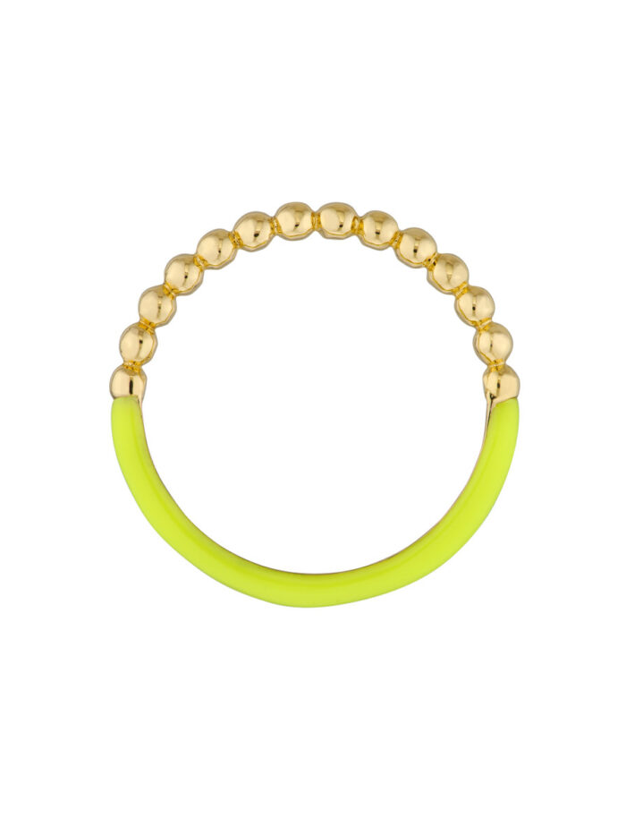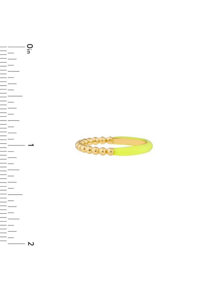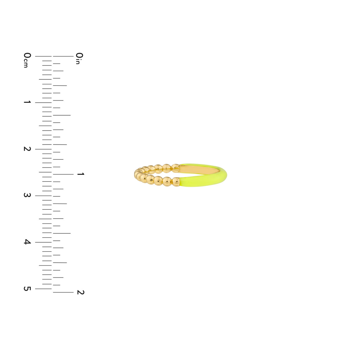 Make a bold statement with this eye-catching 14K yellow gold ring, featuring a vibrant combination of beaded and neon yellow enamel accents. The half-beaded, half-enamel design adds a touch of modern flair, perfect for those who love to stand out. Crafted with meticulous attention to detail, this ring is a testament to Dazyle’s commitment to quality and craftsmanship.