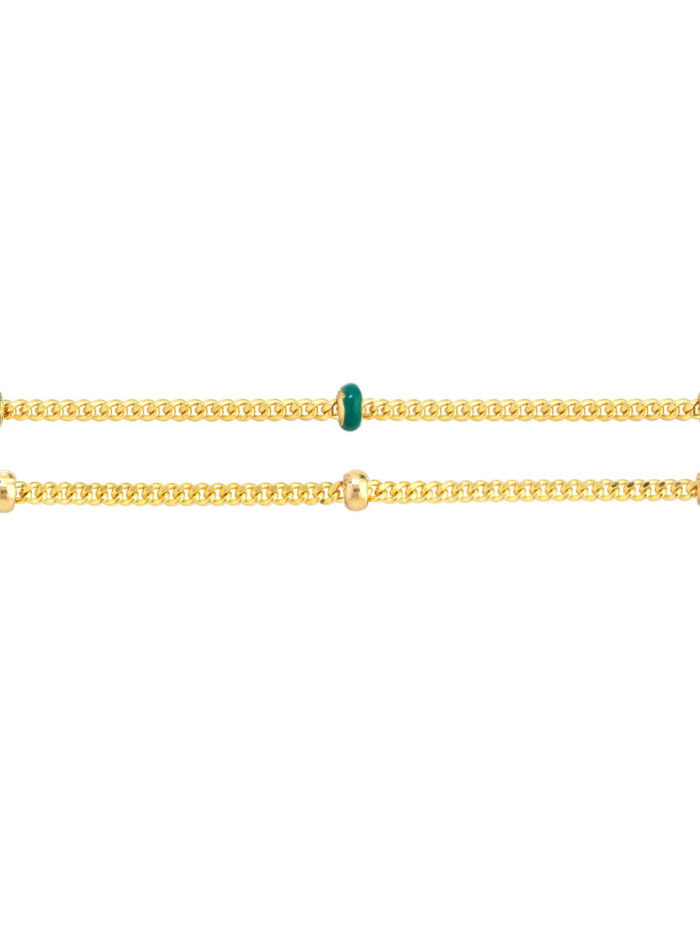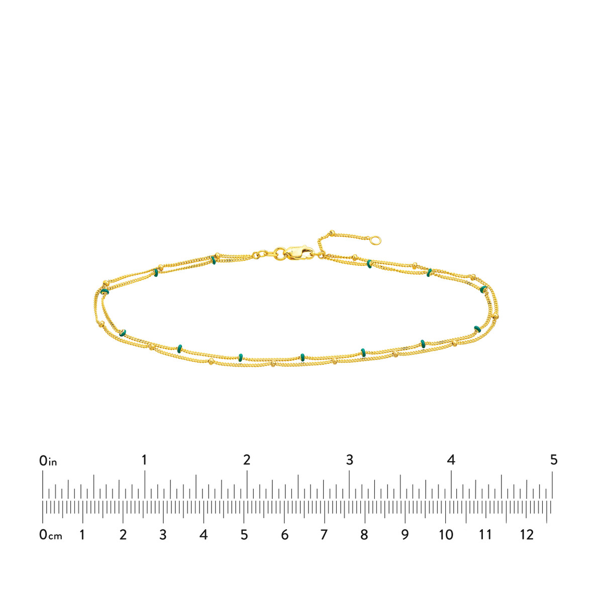 Make a statement with this unique 14K yellow gold anklet featuring a double-stranded design. The blue enamel and beaded Saturn chains combine modern style with a touch of whimsy. The adjustable chain allows for a personalized fit. This eye-catching anklet is perfect for adding a bold and stylish touch to your everyday look.
