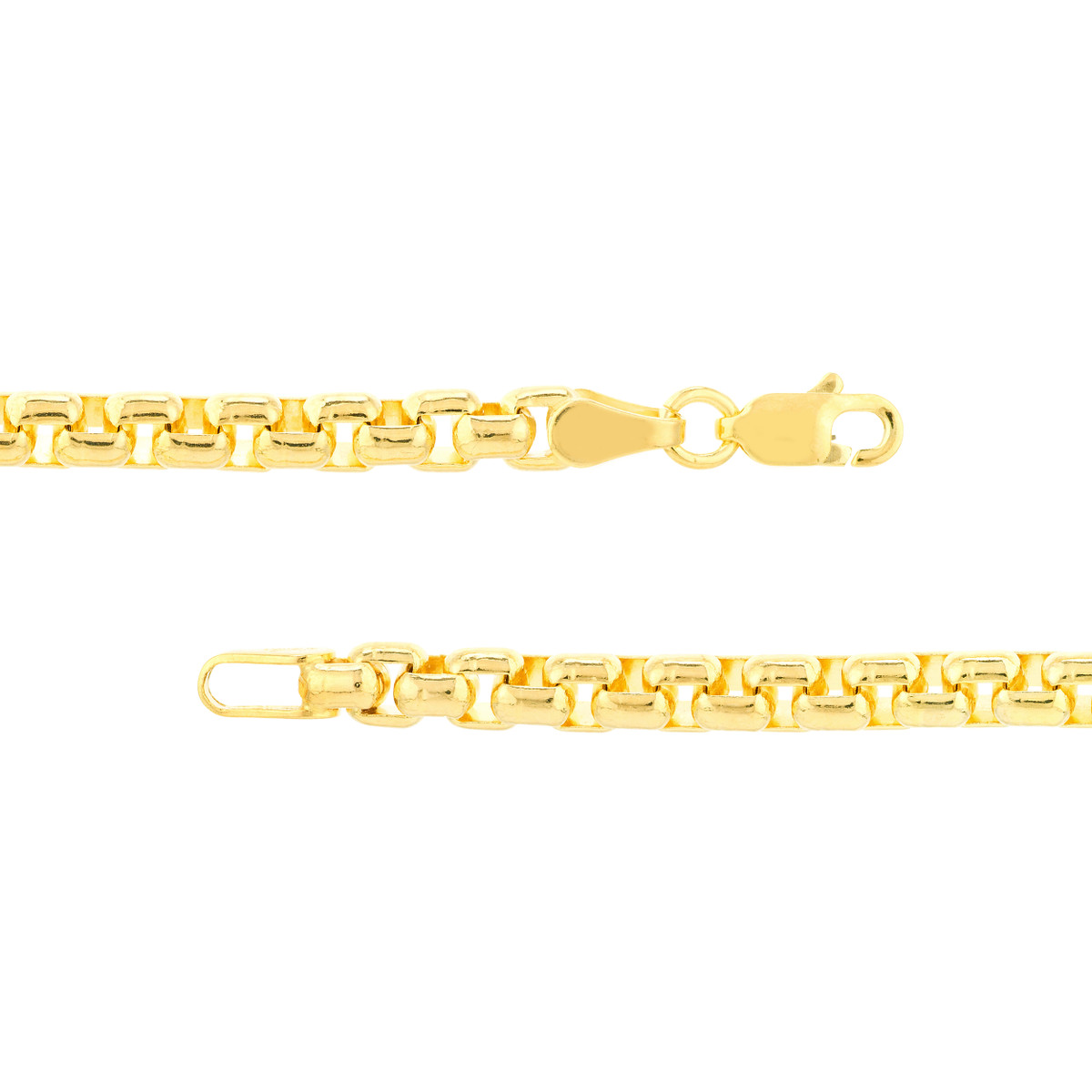 Elevate your style with this stunning 14K yellow gold box chain. Measuring a substantial 3.95mm in width, this chain makes a bold statement. The secure lobster clasp ensures your confidence with every wear. Crafted from durable 14K yellow gold, this chain is both beautiful and long-lasting.