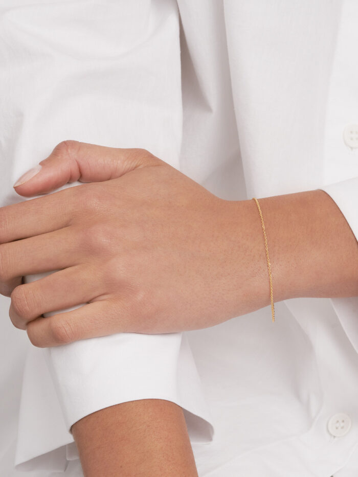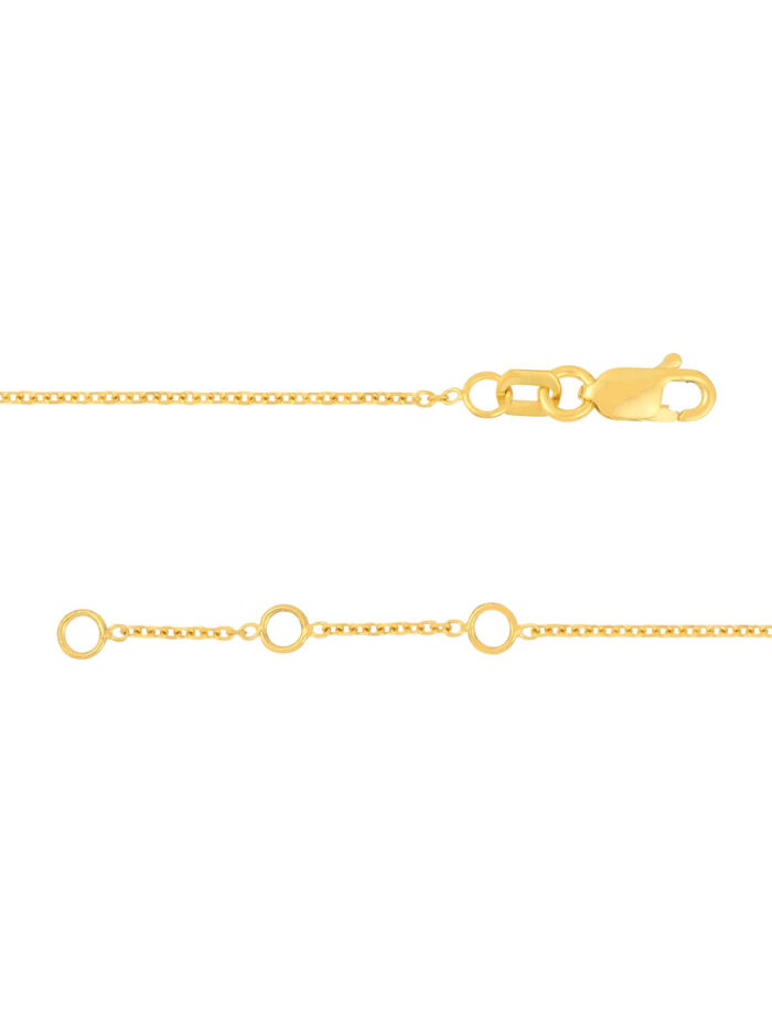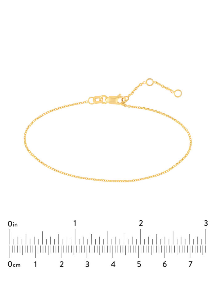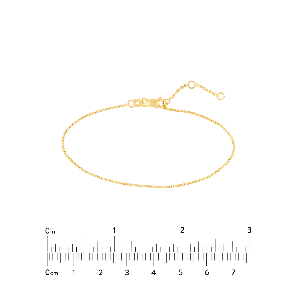 This elegant 14K yellow gold cable chain bracelet features a classic diamond cut design for a touch of sparkle. The adjustable length (6.75-7.25 inches) ensures a comfortable fit for various wrist sizes. The secure lobster clasp provides easy wear and peace of mind. Perfect for everyday styling or a special occasion.