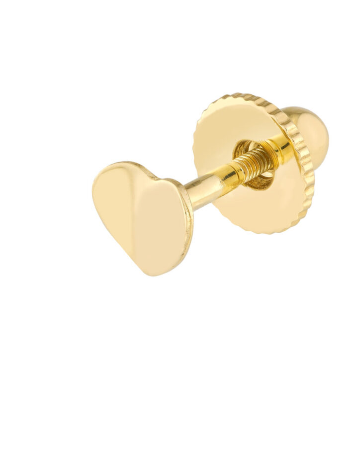Give your child a touch of elegance with these 14K yellow gold concave heart stud earrings. Crafted with care from solid gold, these earrings are lightweight and comfortable for everyday wear. The secure screw back closure provides peace of mind, ensuring they stay in place. The classic heart shape adds a timeless charm, making them a perfect gift for any occasion.